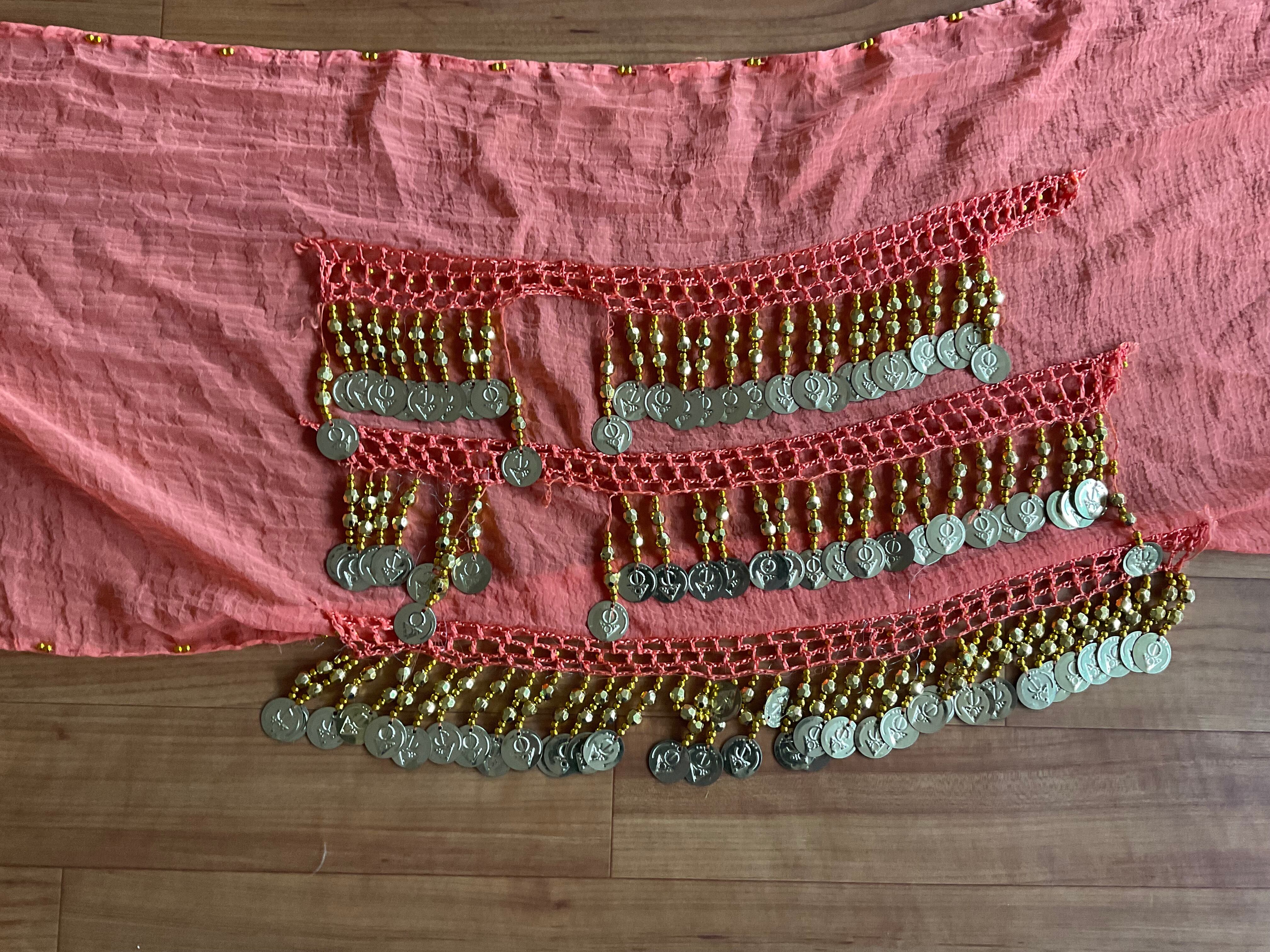 #ベリーダンスヒップスカーフ #中古品 #ダンスアクセサリー #オレンジ色 #金色 #ジプシー #パフォーマンス #コスプレ #華やか