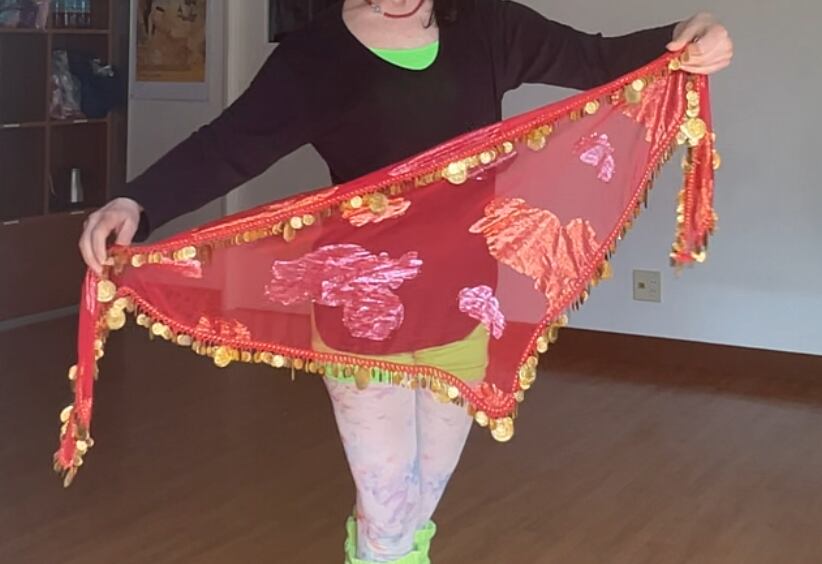 新しいオーナー様には、この魅力的なヒップスカーフを身に付けて、自分らしいダンスやファッションを思い切り楽しんでいただければと思います。特別なアイテムとして、ぜひあなたのワードローブに加えてください!