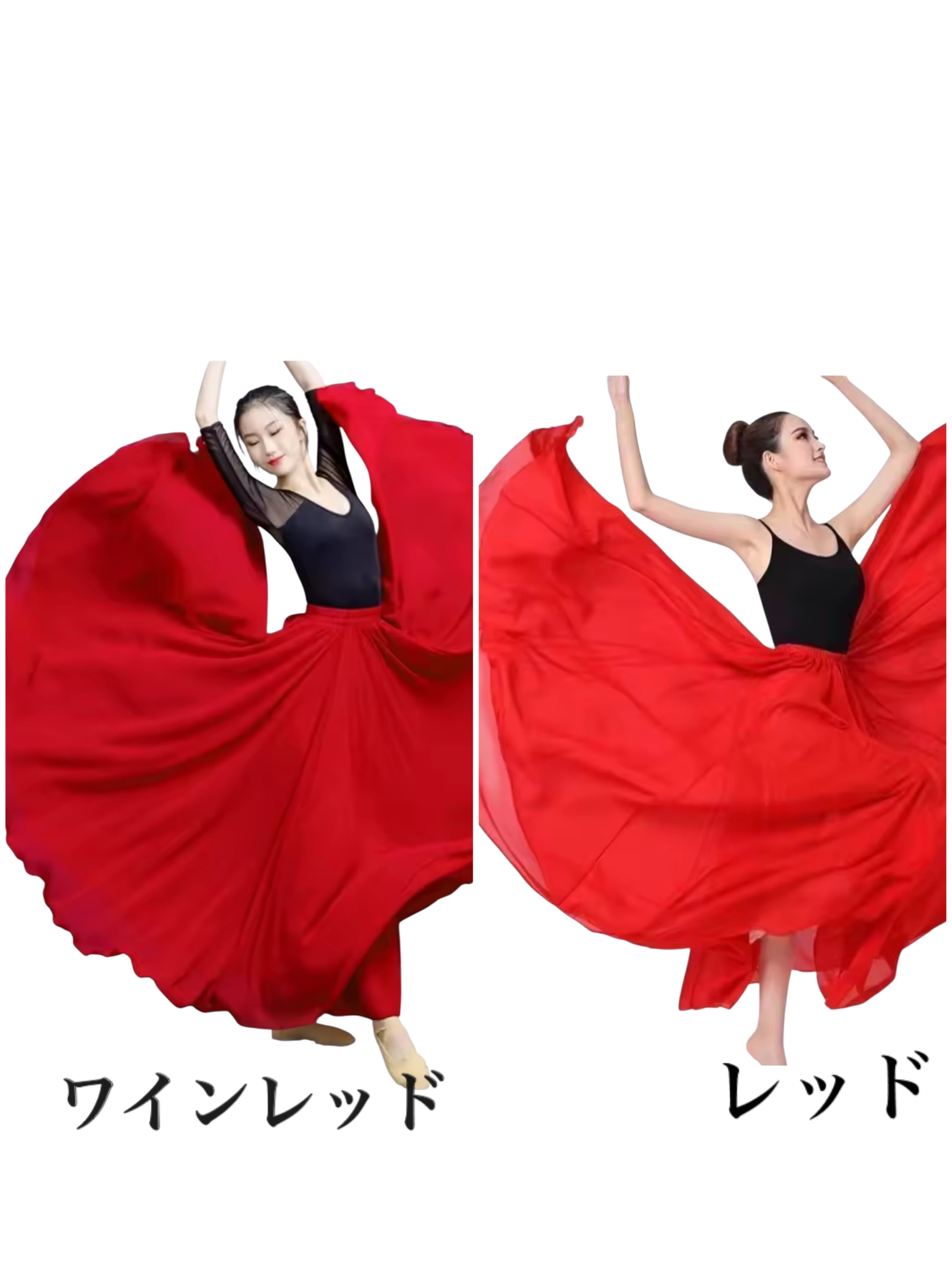 #シフォンスカート #二重スカート #スタイリッシュスカート #ベリーダンス #ジプシースカート #フラメンコスカート #社交ダンス #ロングスカート #720度スカート #25ヤードスカート #多色展開 #ダンス衣装