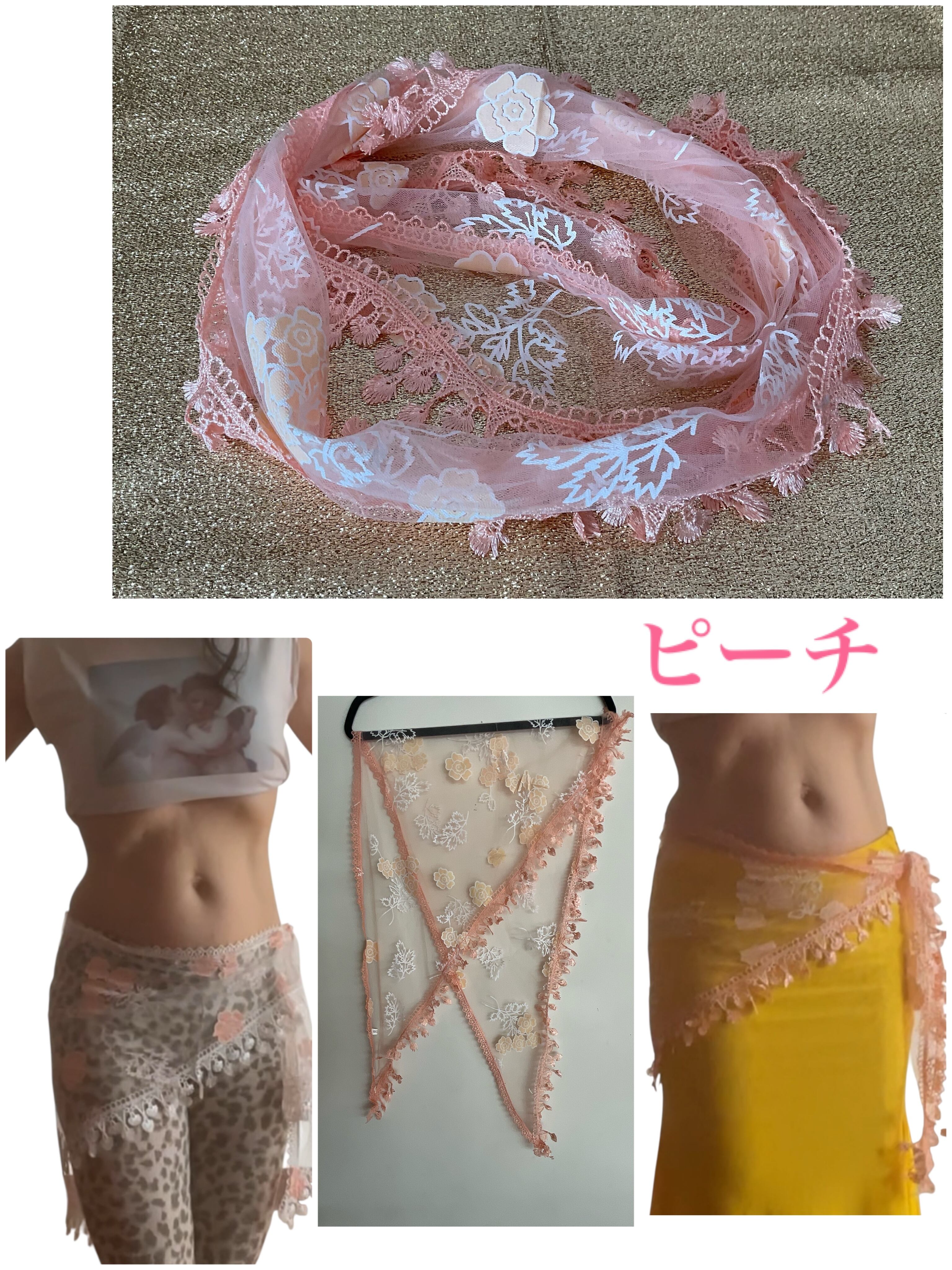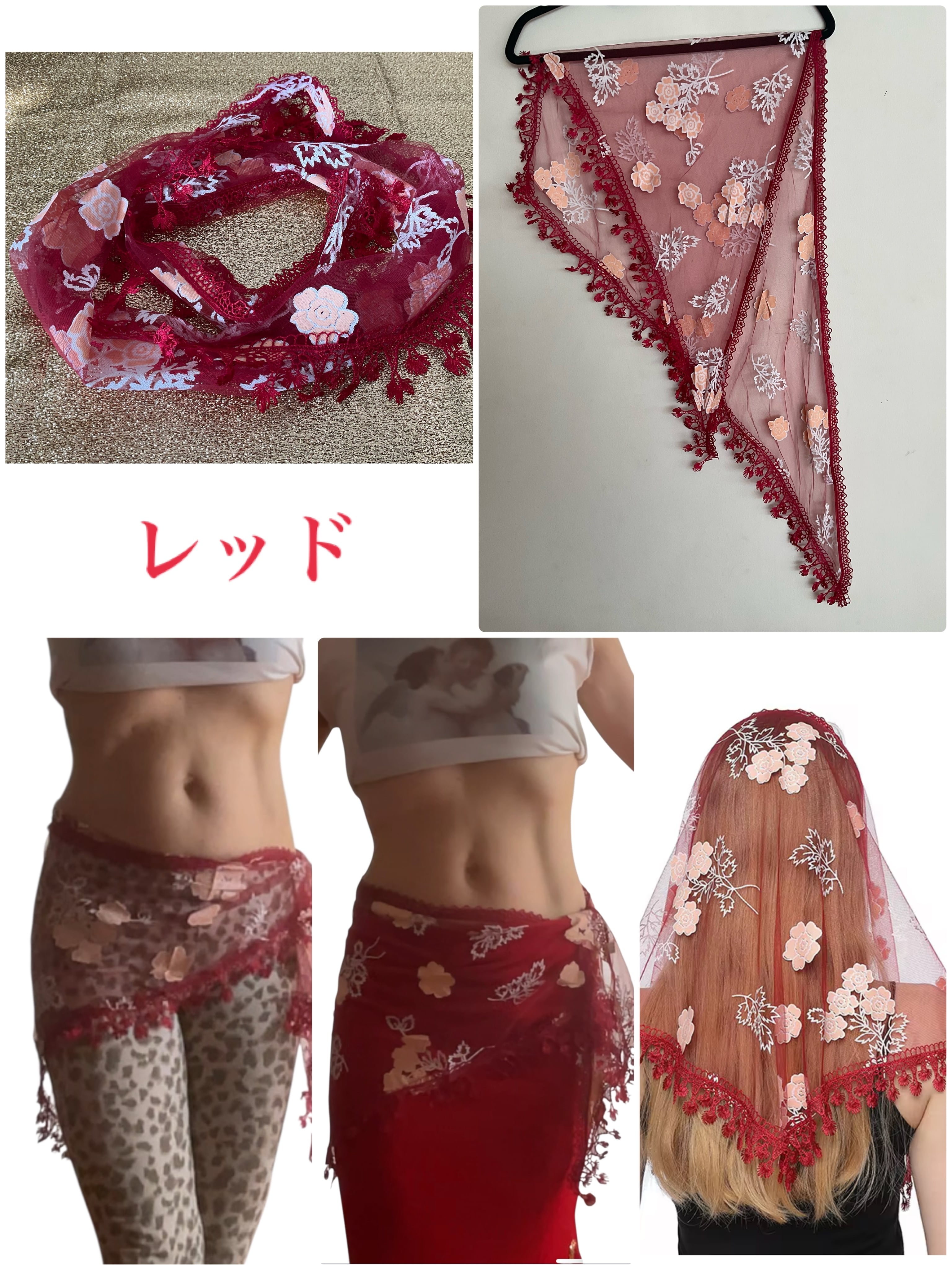#ベリーダンス #ヒップスカーフ #ヘッドスカーフ #花柄アップリケ #レーススカーフ #透け感 #多機能スカーフ #ダンスアクセサリー #ジプシーダンス #ステージ衣装 #レッスン用 #軽量スカーフ #手洗い推奨 #ダンスファッション #バッグアクセサリー #ネックスカーフ #ヒップアクセサリー #ダンサーズアイテム #舞台映え #エレガント