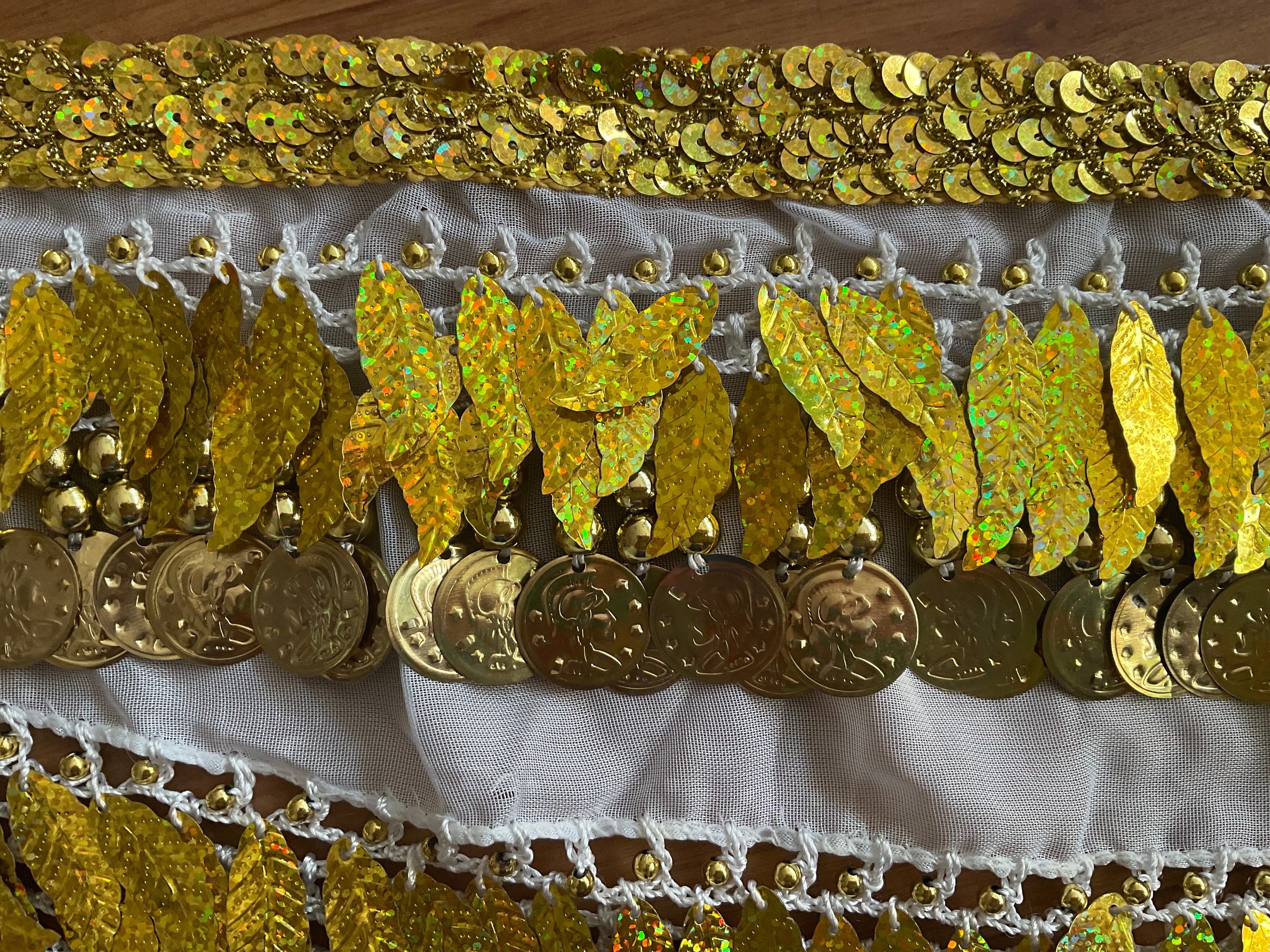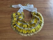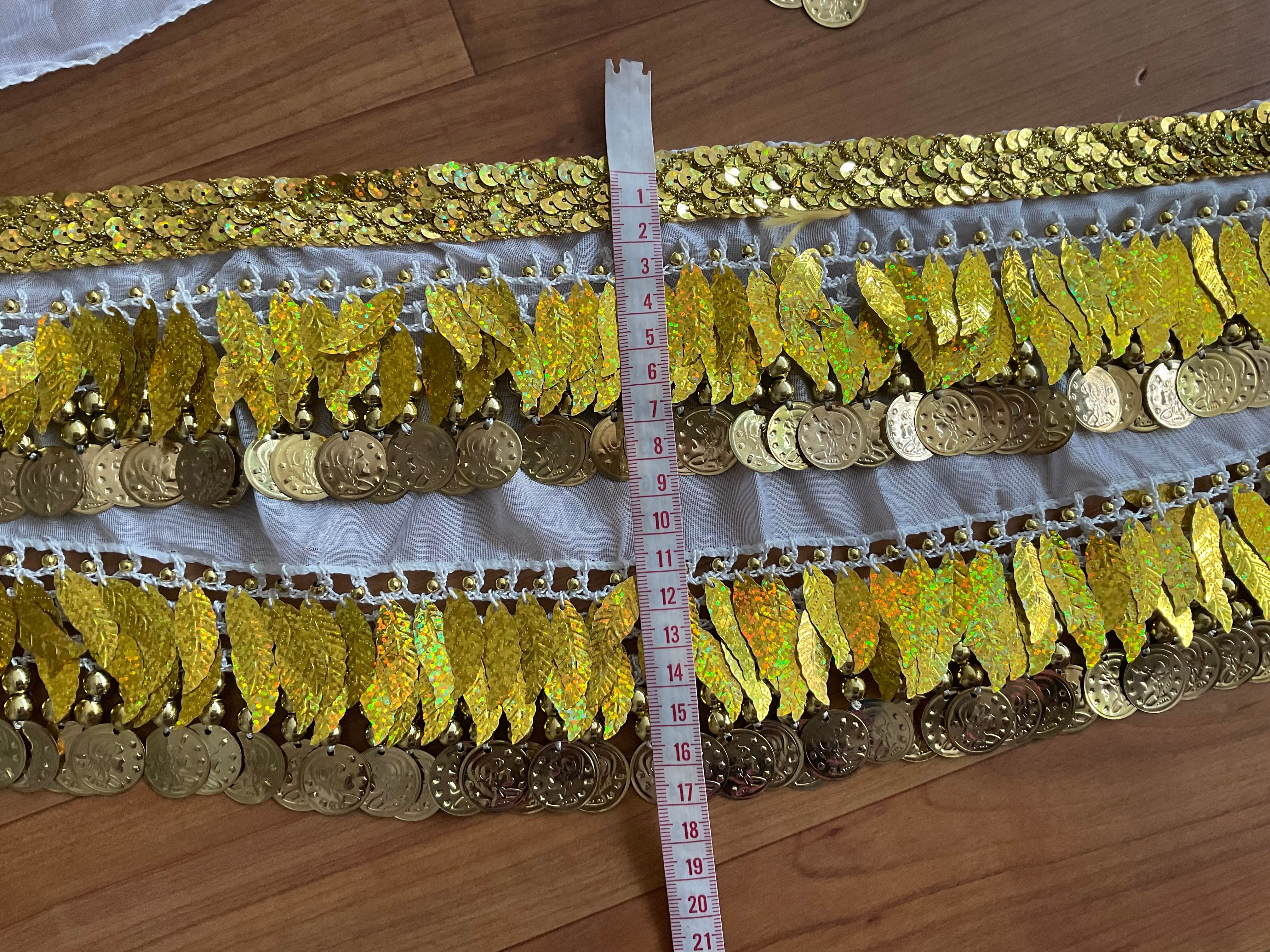 ベリーダンス ヒップスカーフ ゴールド×ホワイト コイン付き ジプシー ステージ衣装 練習用