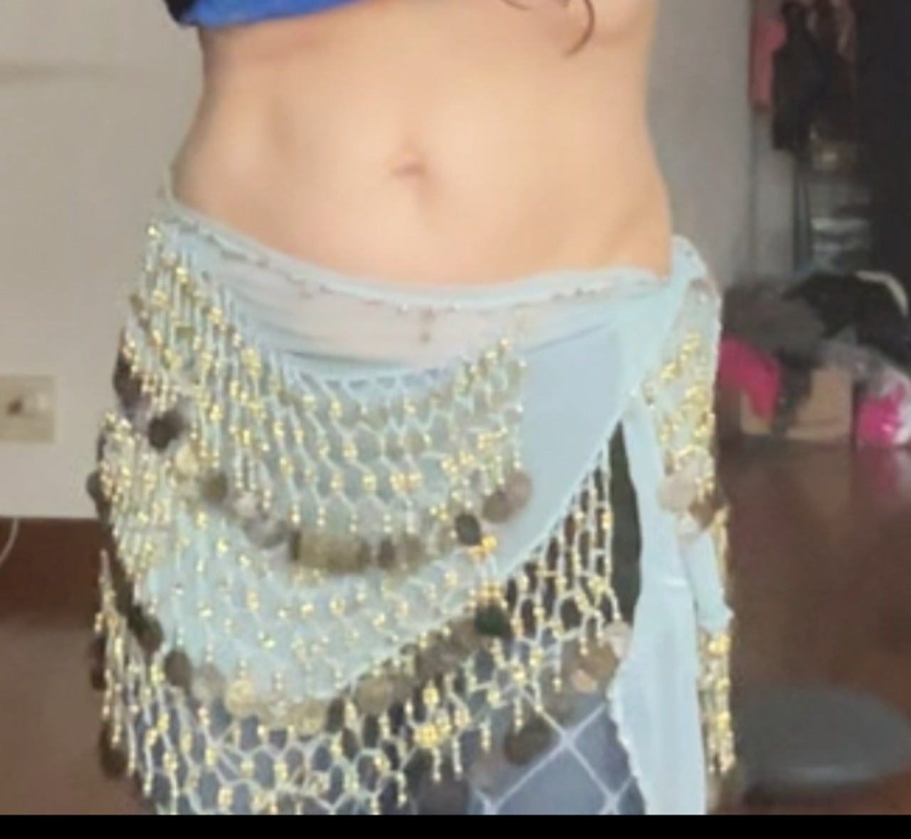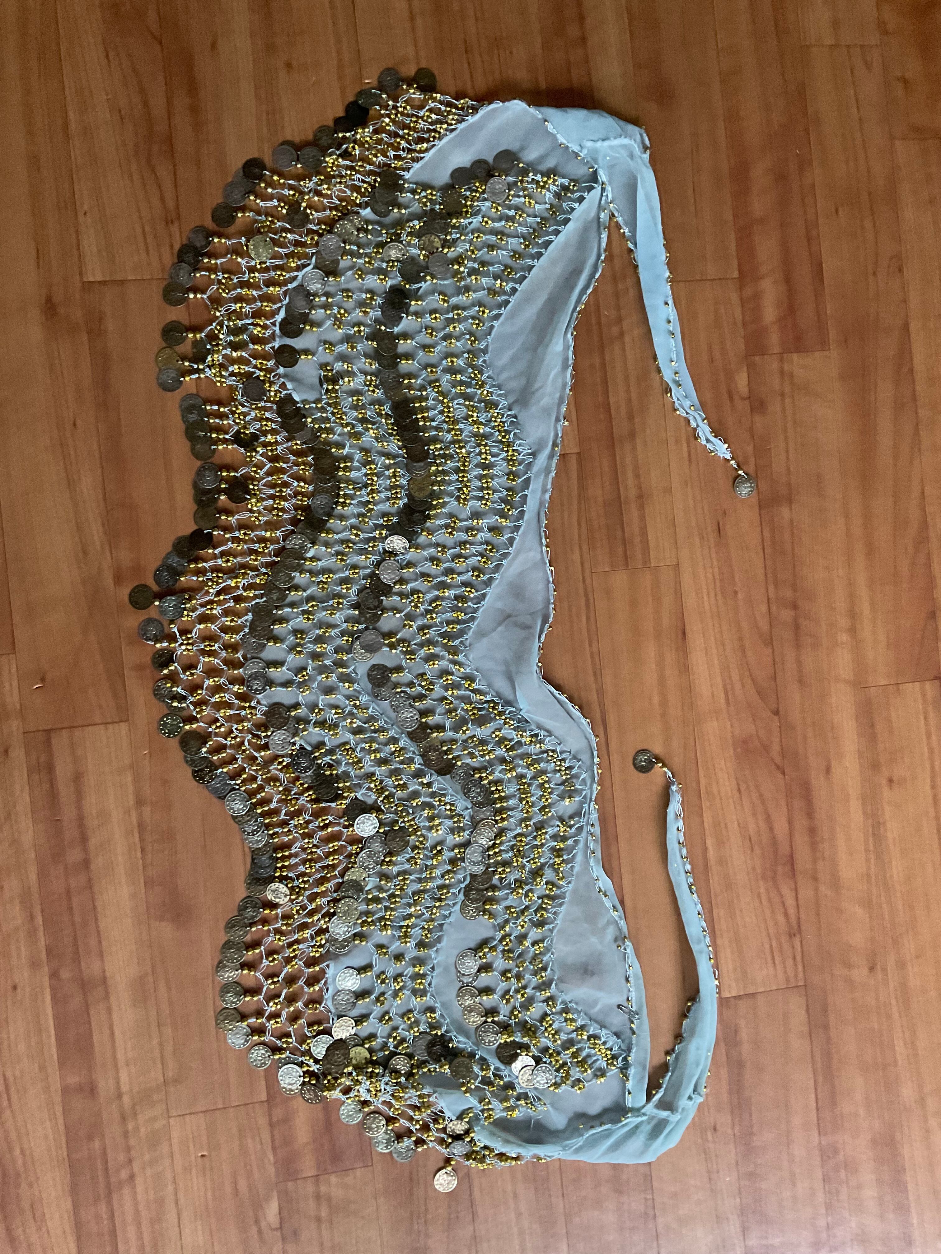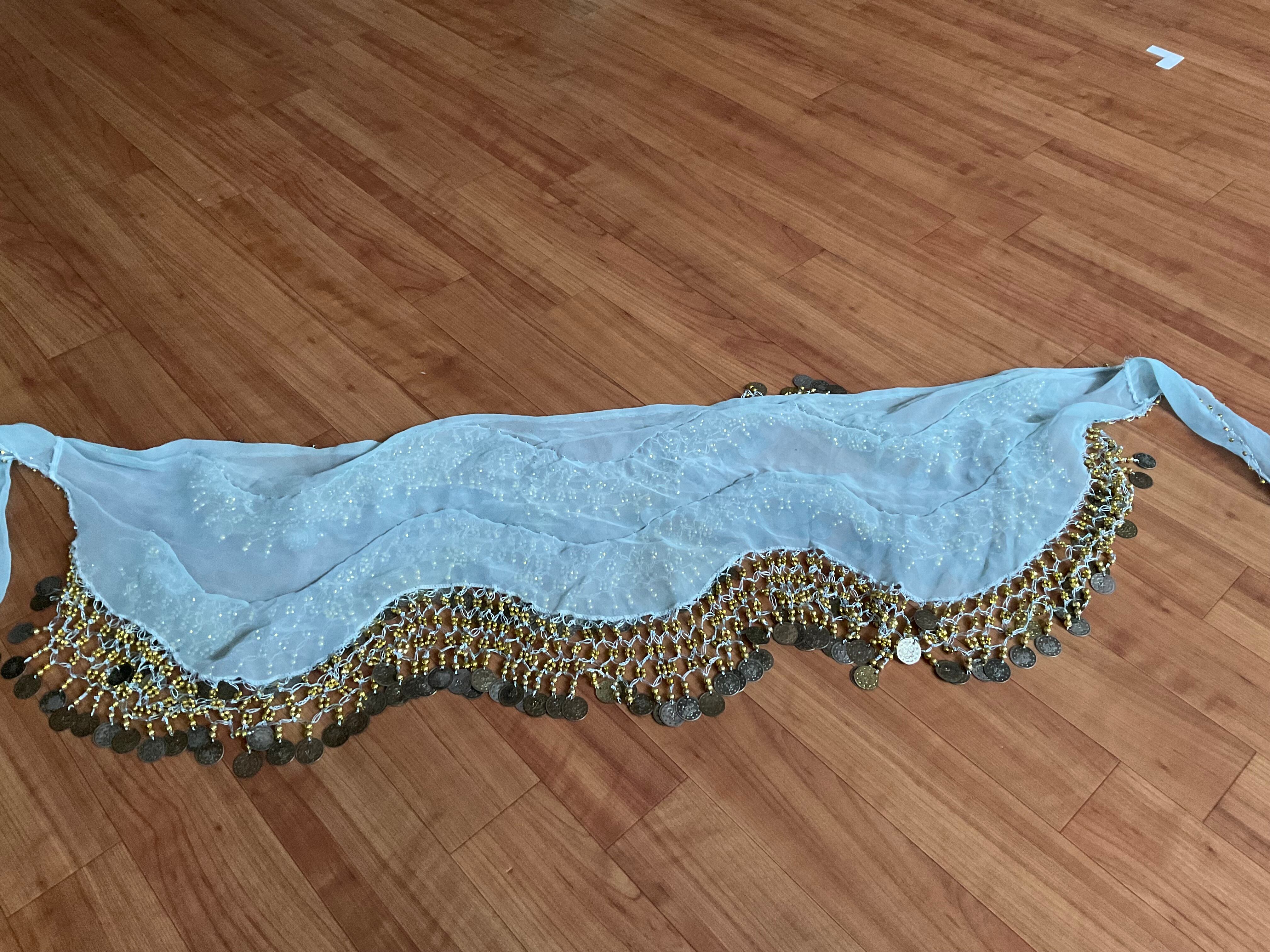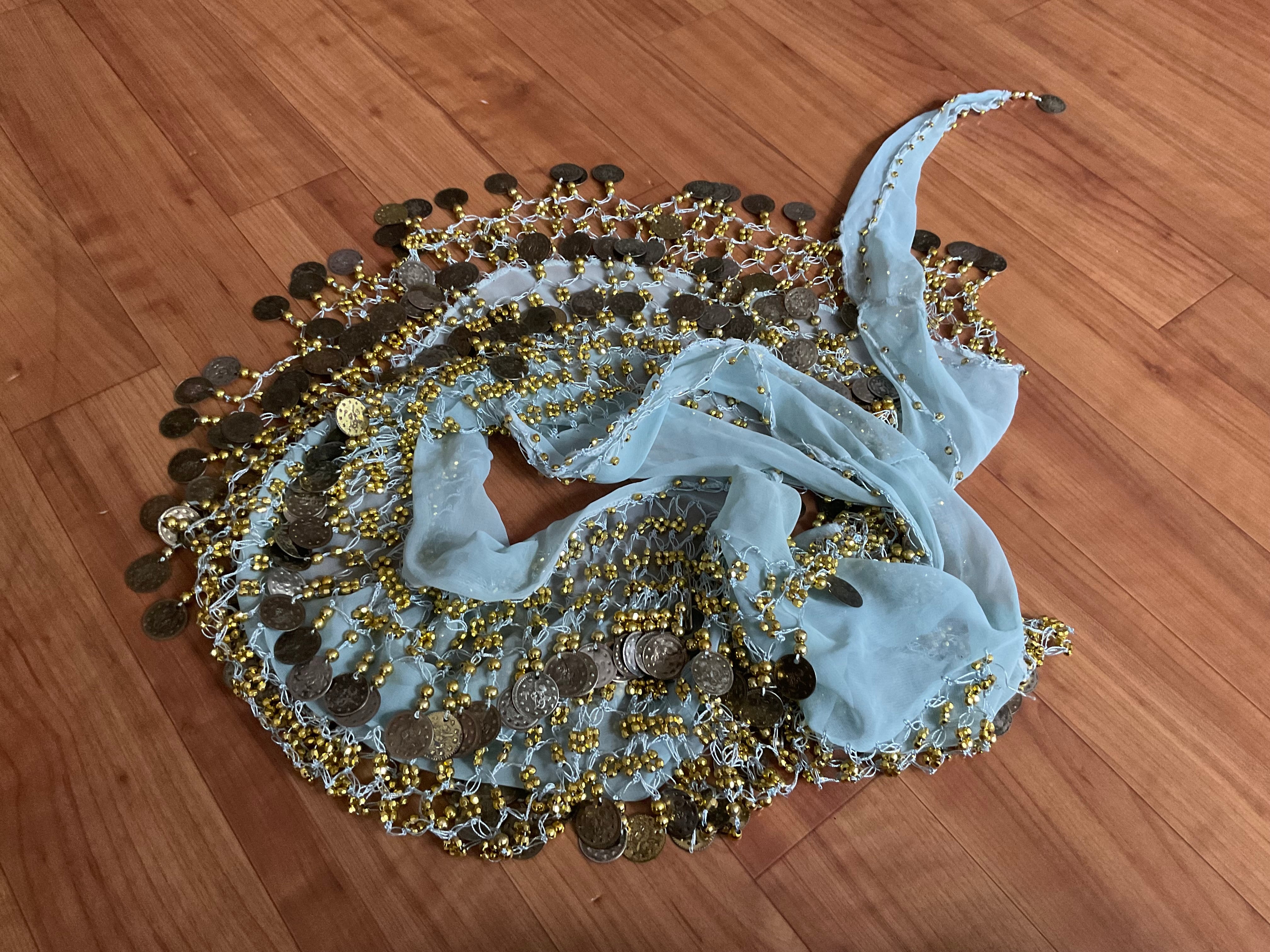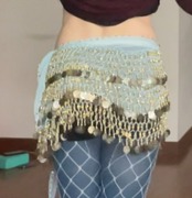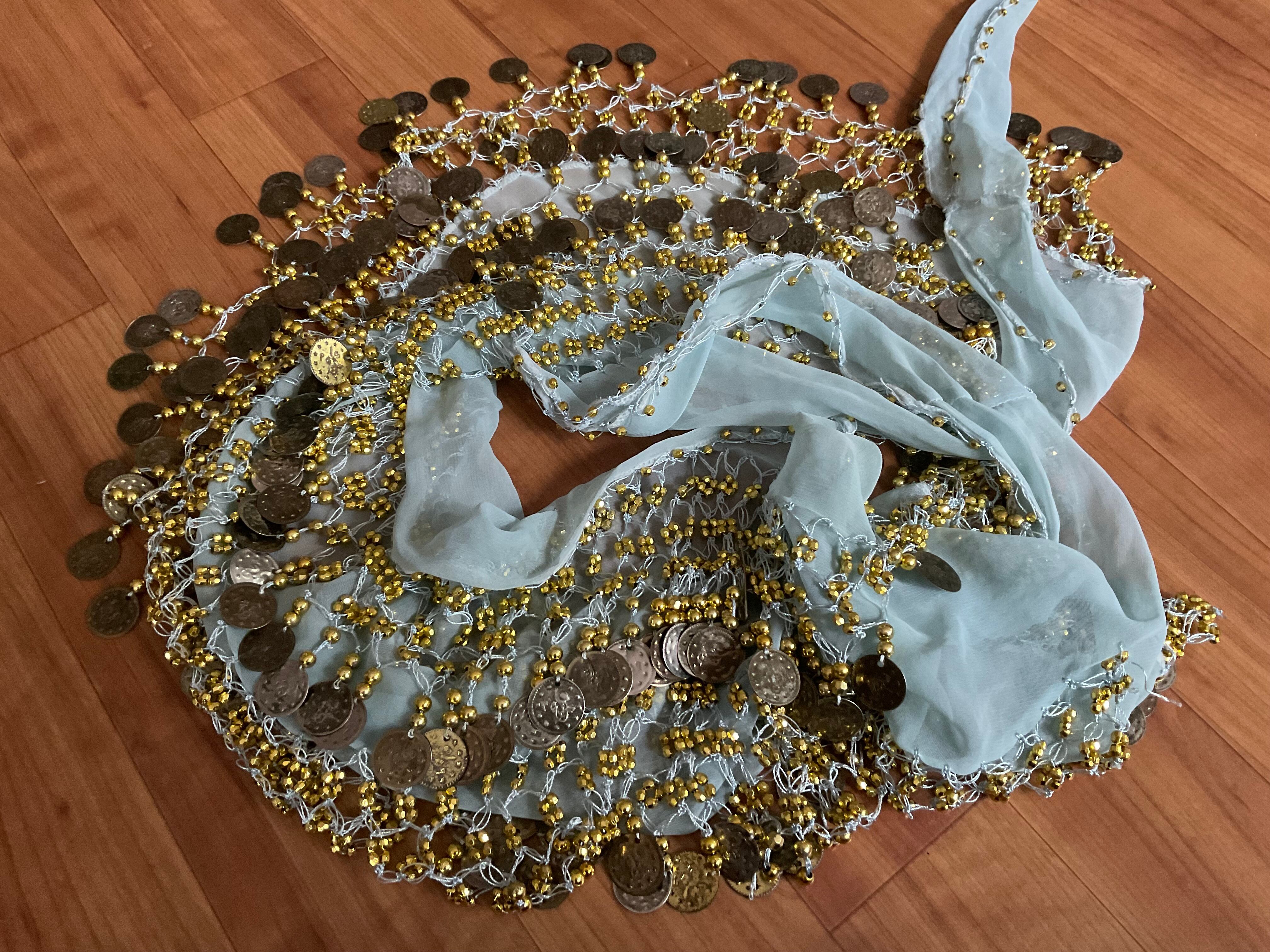 #ベリーダンス #ヒップスカーフ #コインヒップスカーフ #エジプト製 #ダンス衣装 #レッスン着 #水色 #ゴールド #ベリーダンス衣装