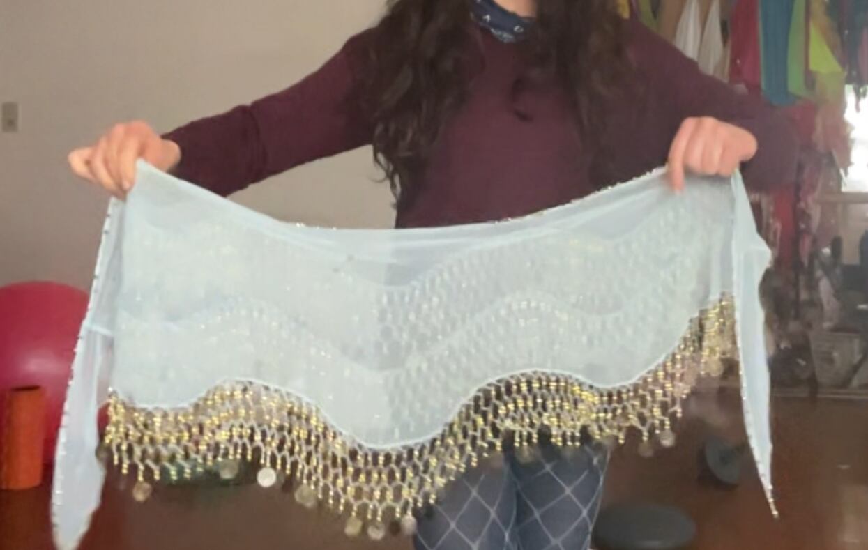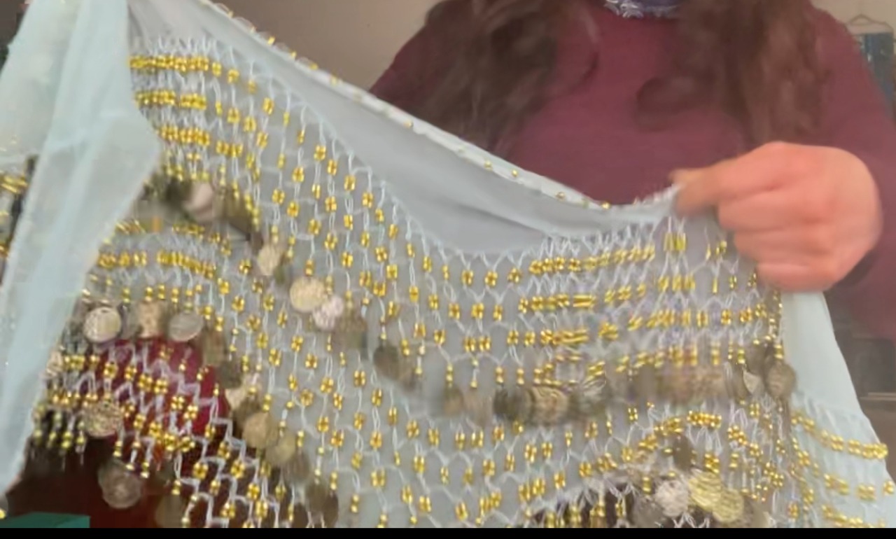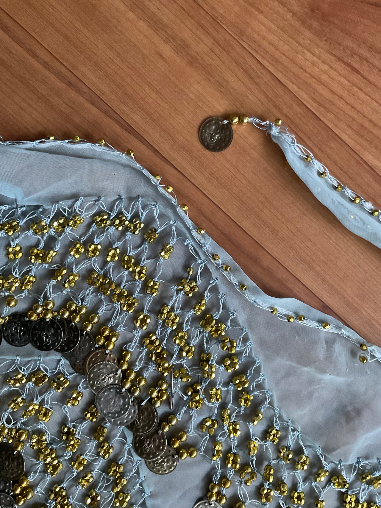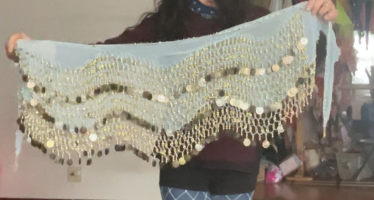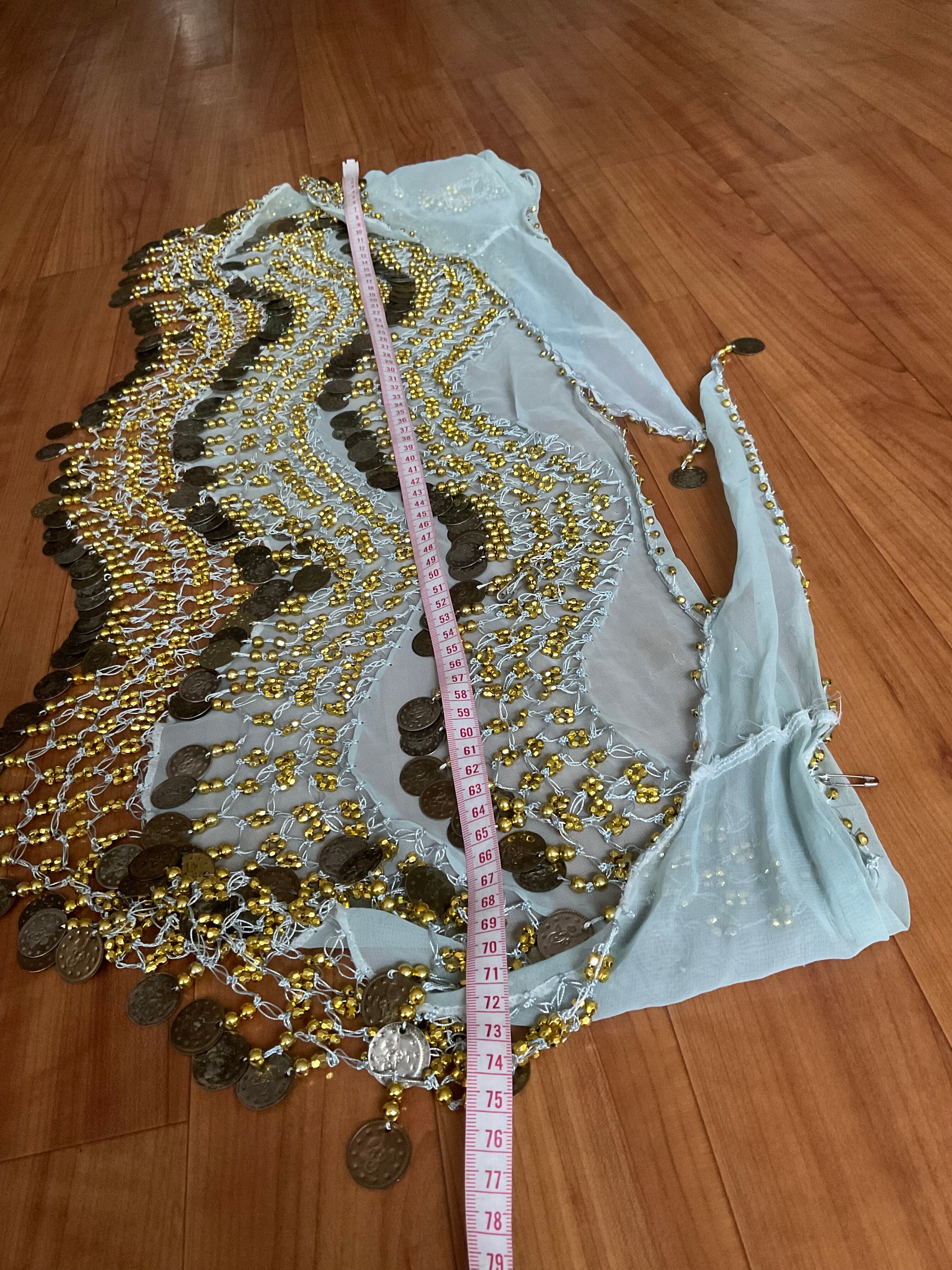#ベリーダンス #ヒップスカーフ #コインヒップスカーフ #エジプト製 #ダンス衣装 #レッスン着 #水色 #ゴールド #ベリーダンス衣装