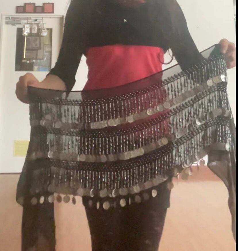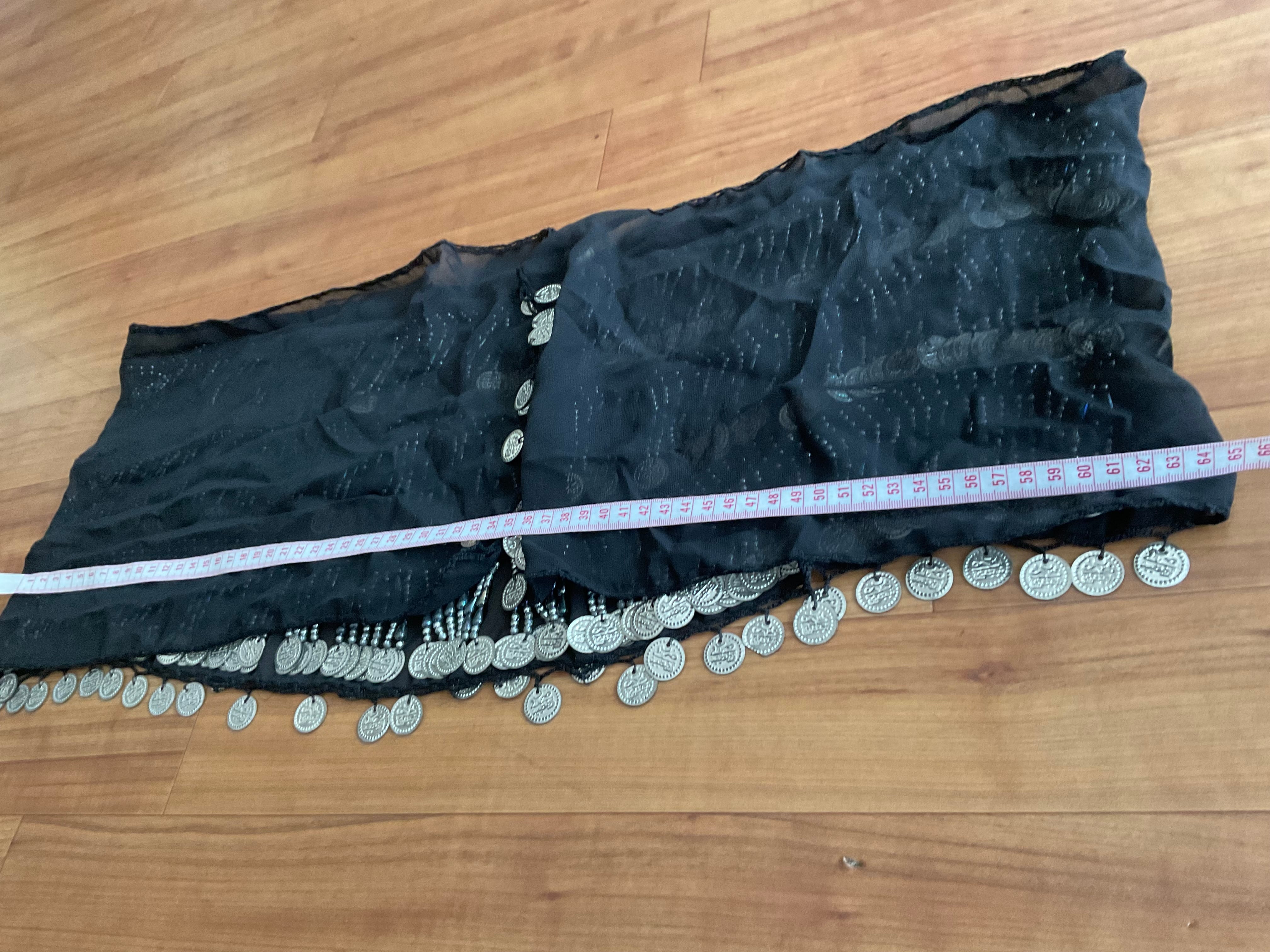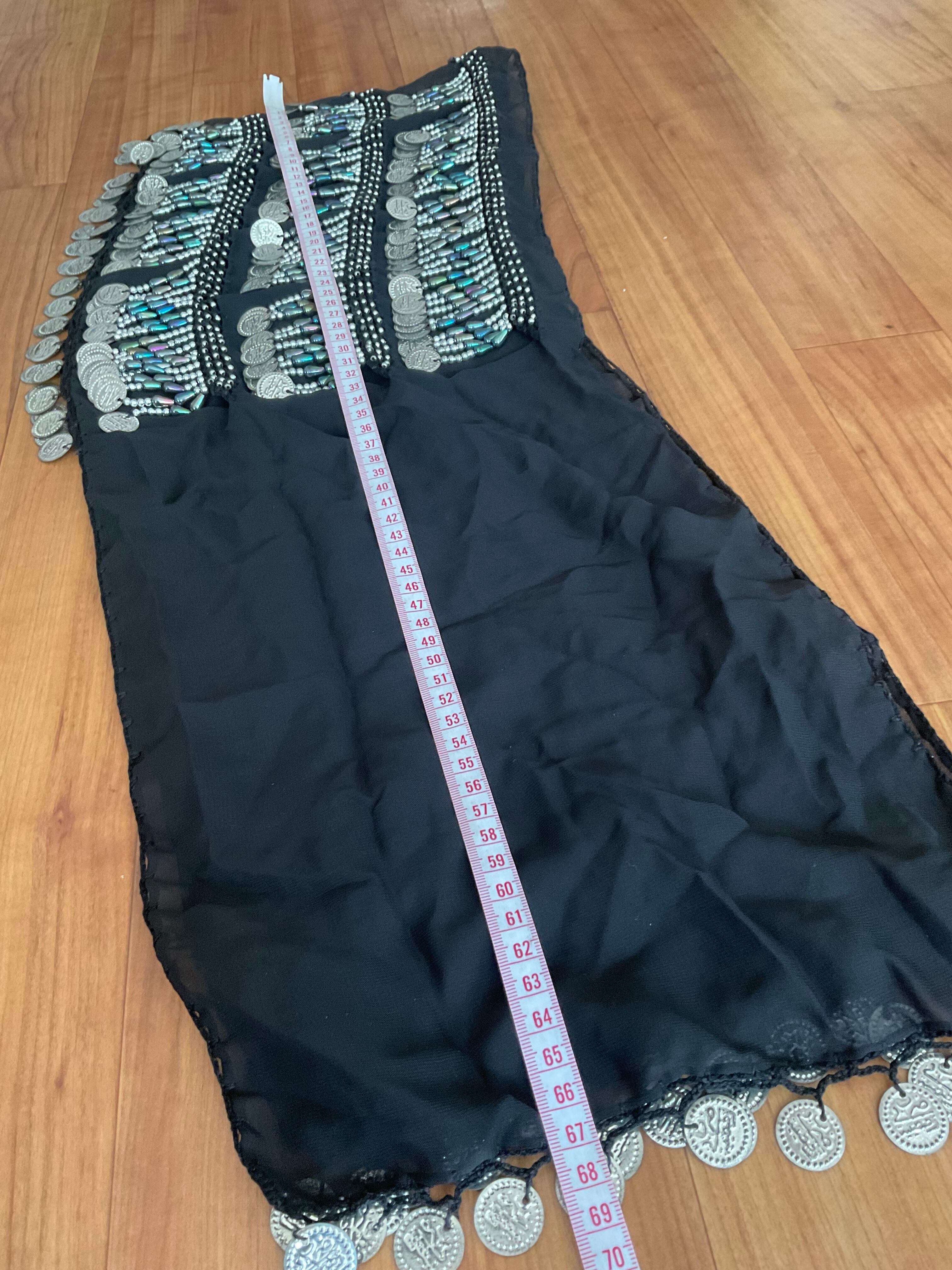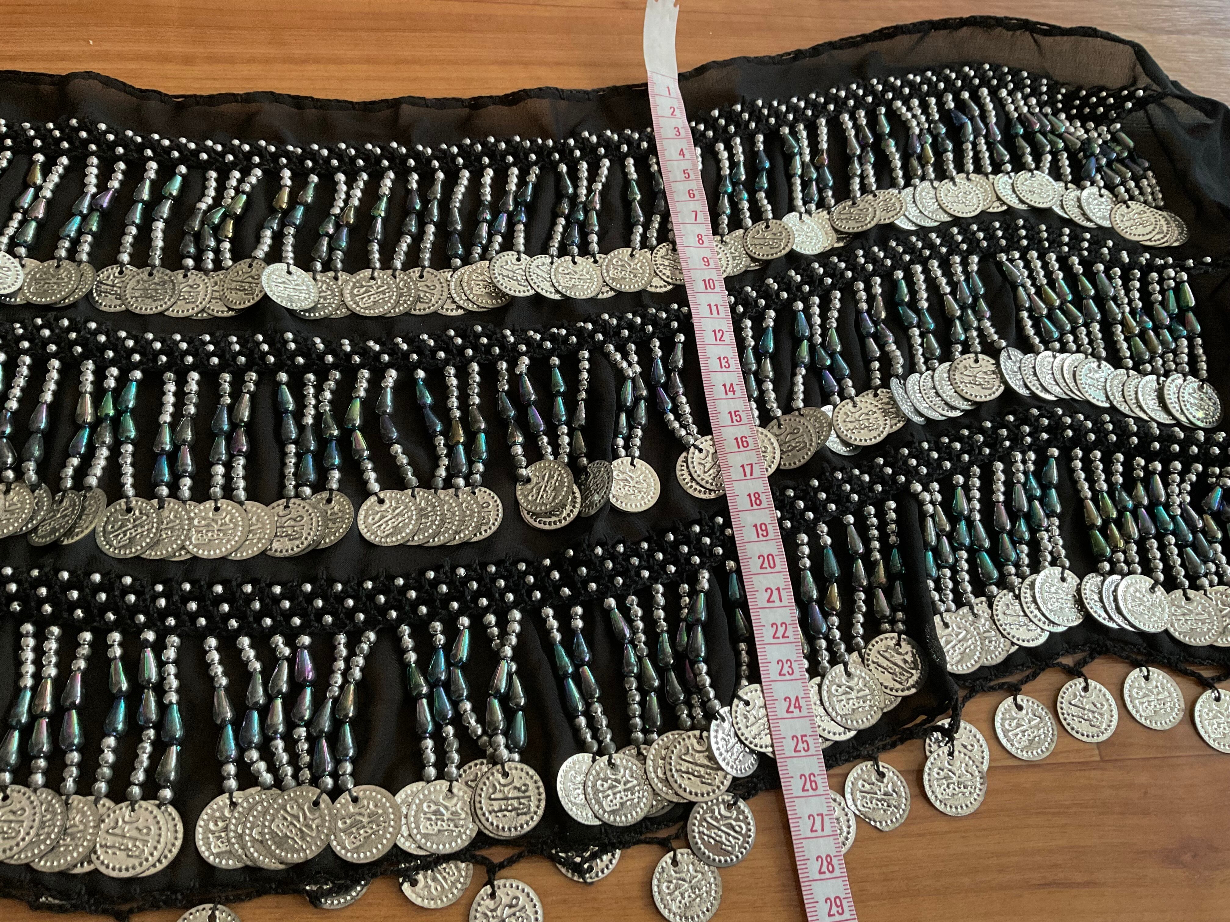 【本場エジプト製】ベリーダンス ヒップスカーフ ブラック×シルバー コイン&ビーズ ハンドメイド