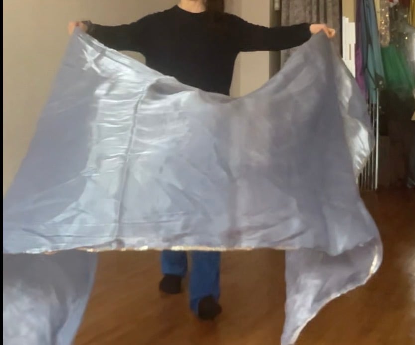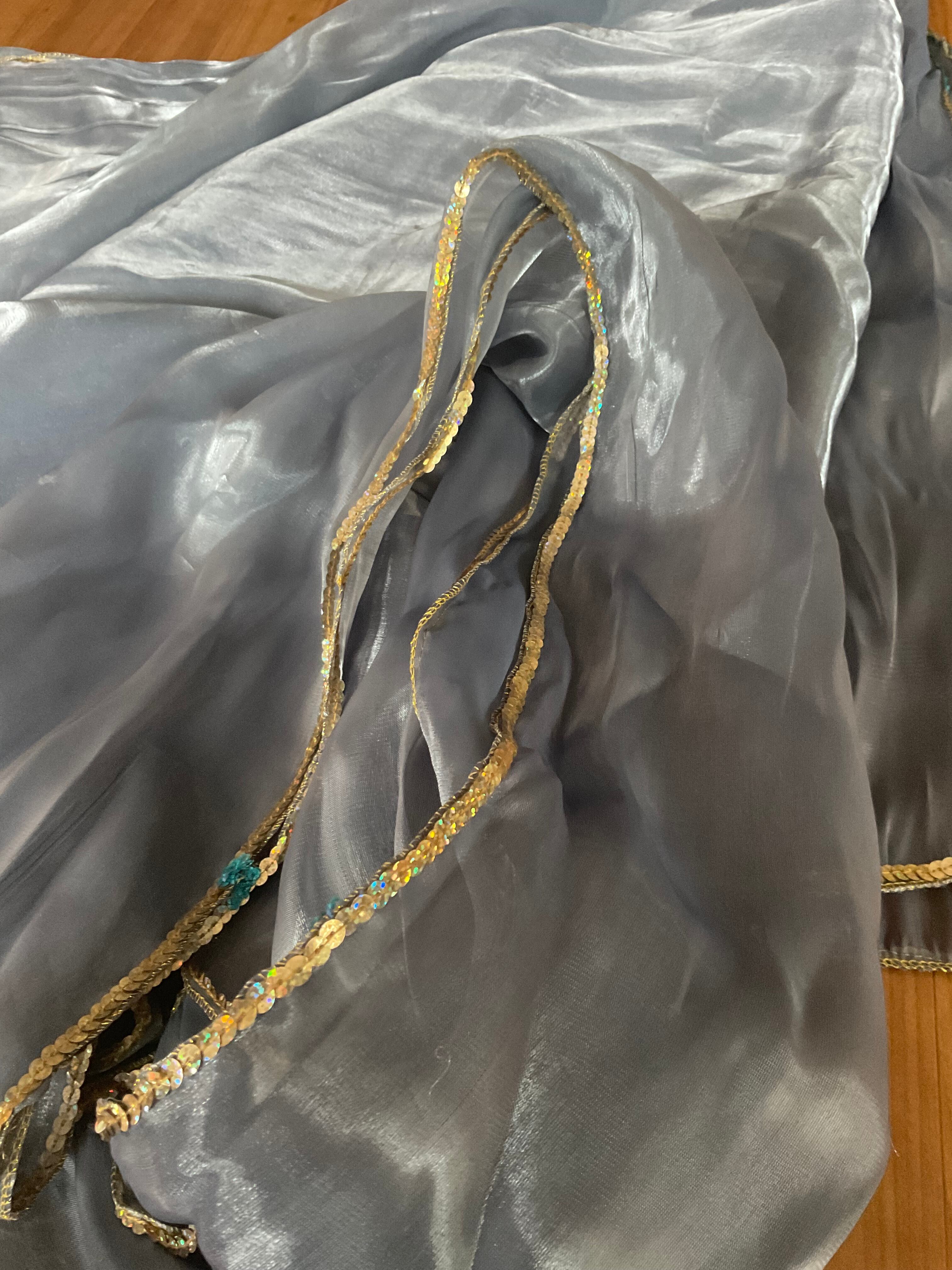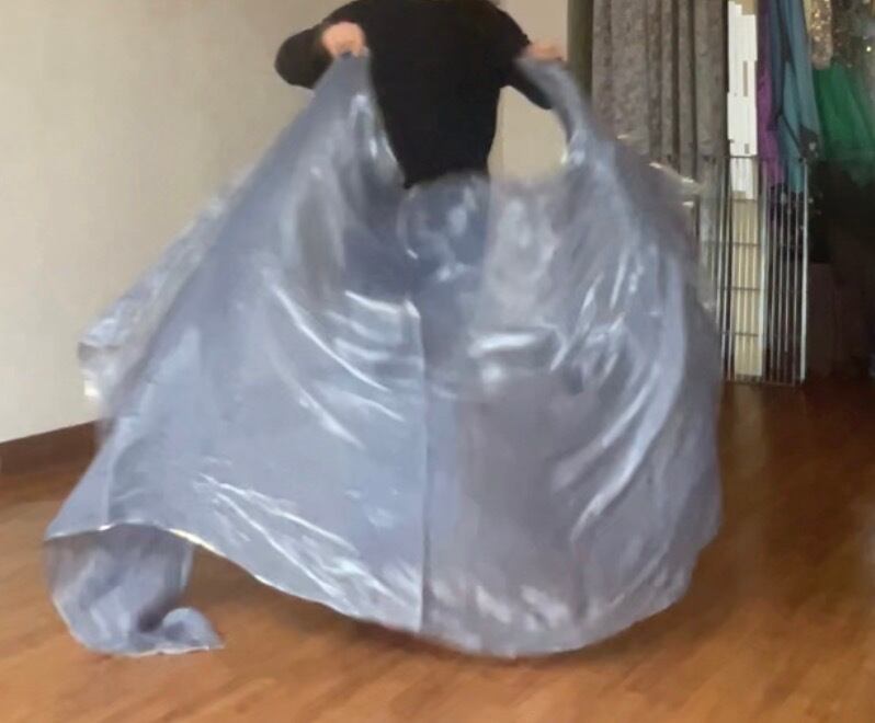 #ベリーダンス #ベール #大判ベール #メタリックグレー #スパンコール #舞台衣装 #発表会 #練習用 #中古美品 #ダンス小物 #オーガンジー