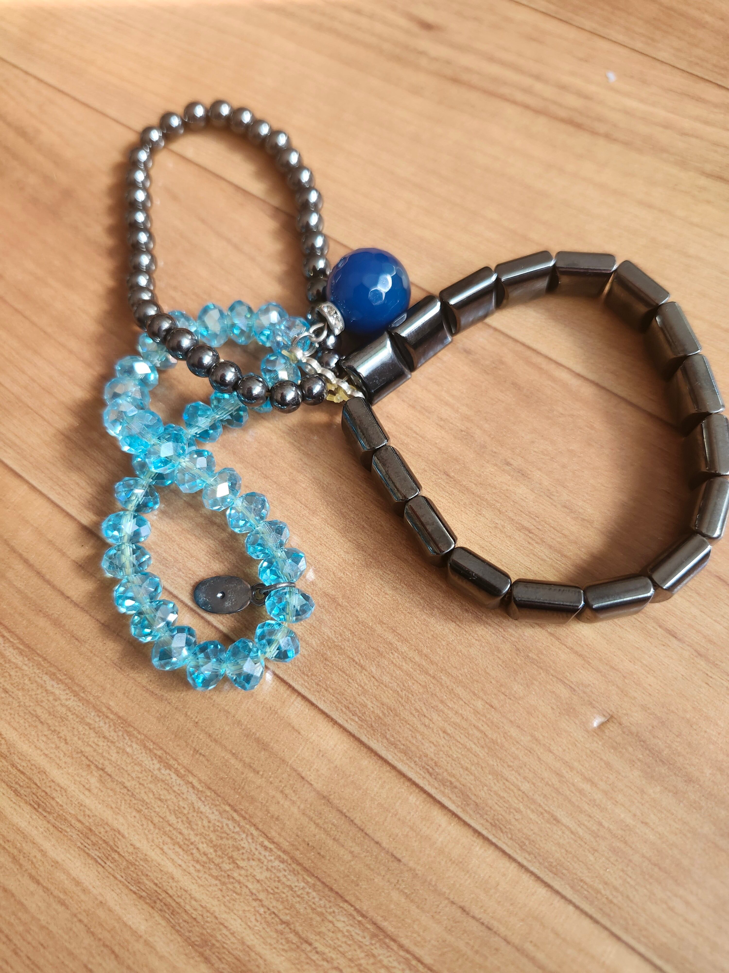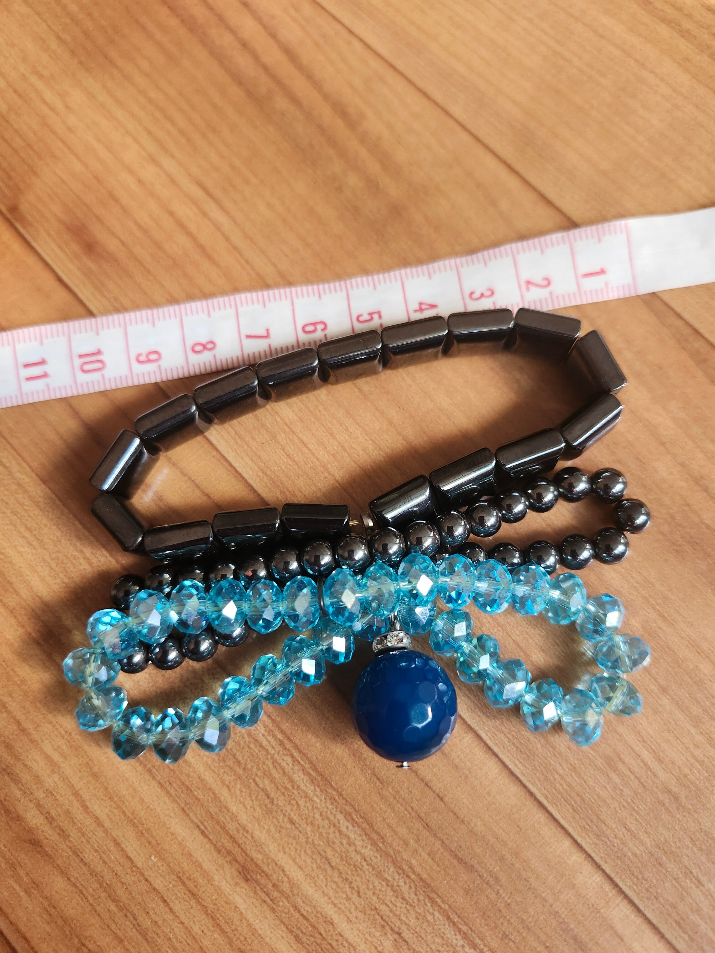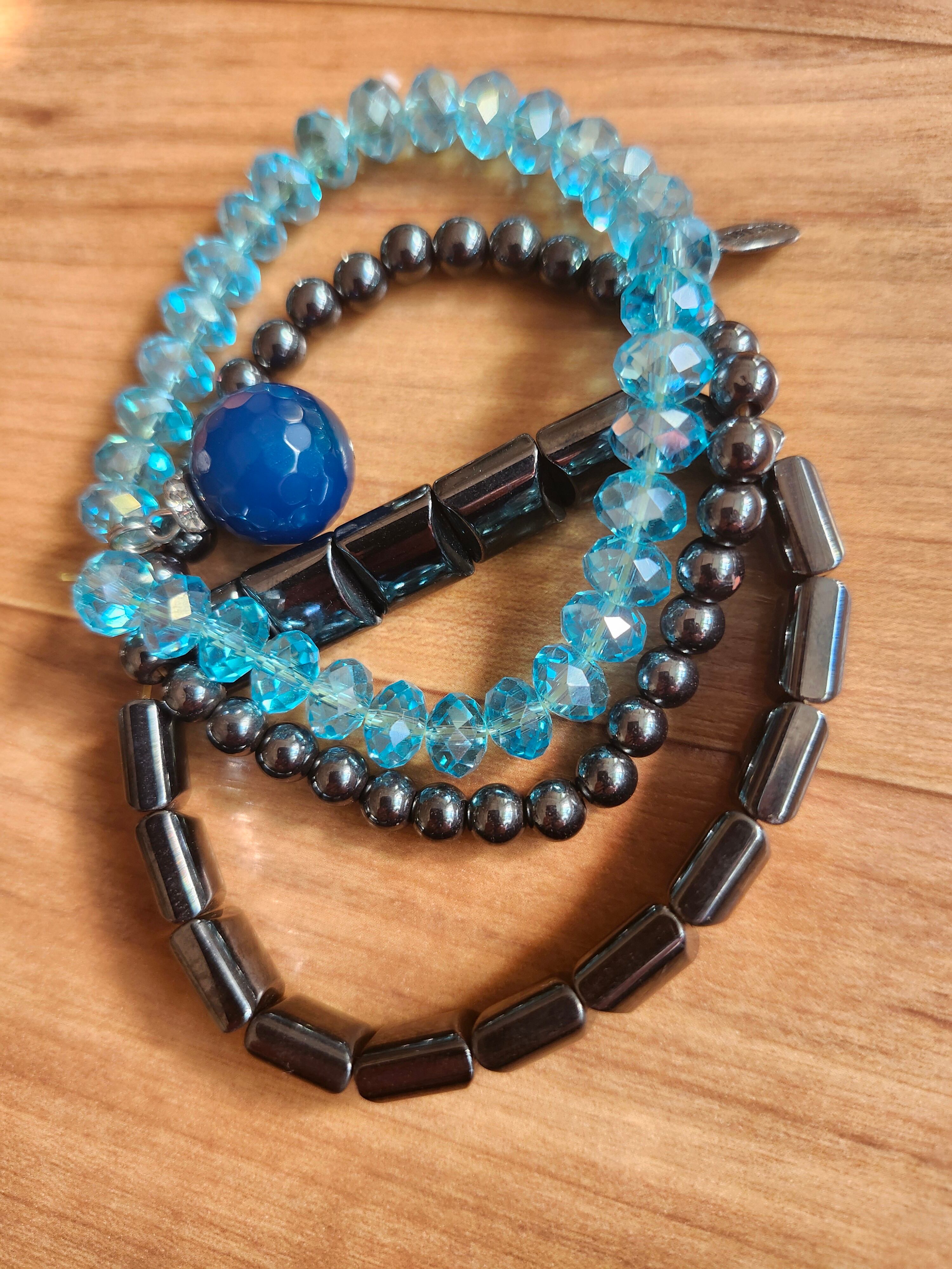 【極美品】ABISTE (アビステ) 3連ストレッチブレスレット ブルー&メタリック