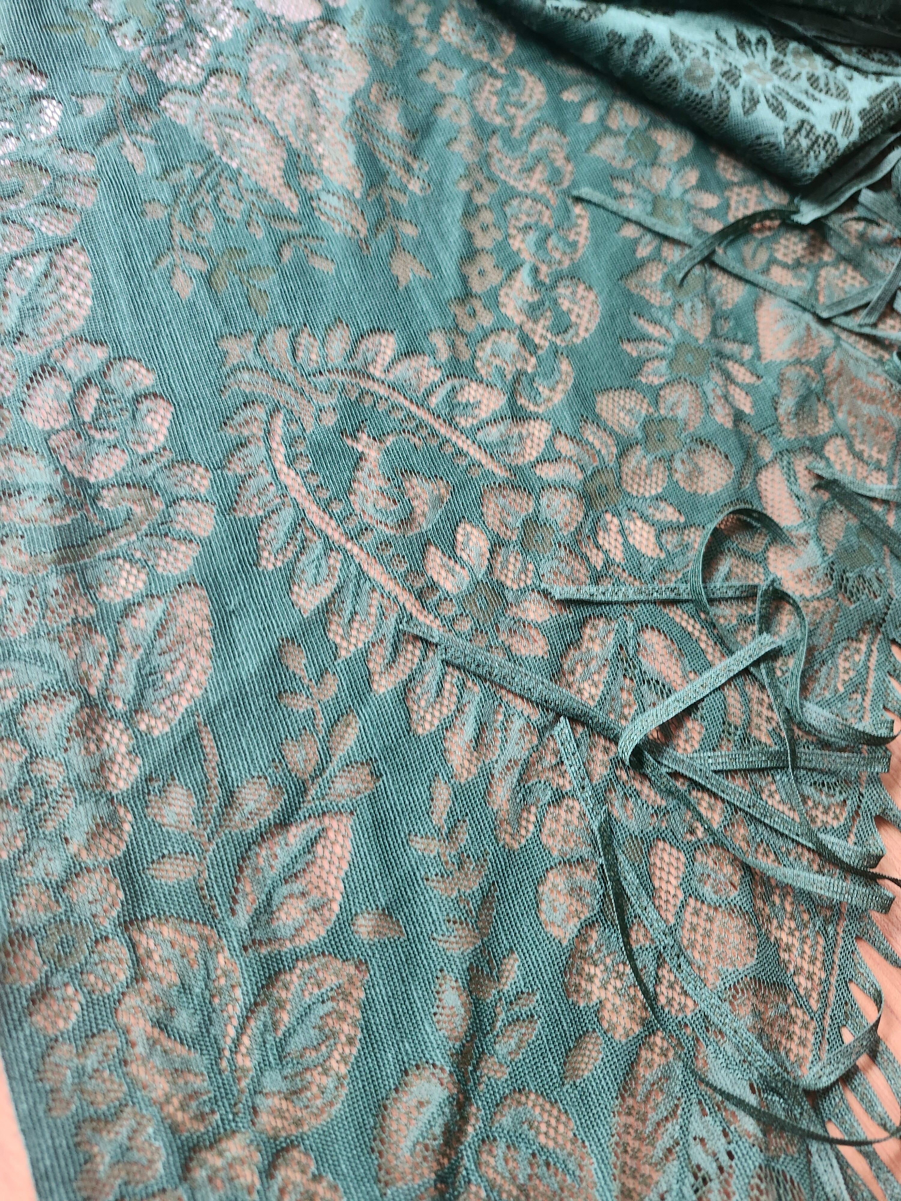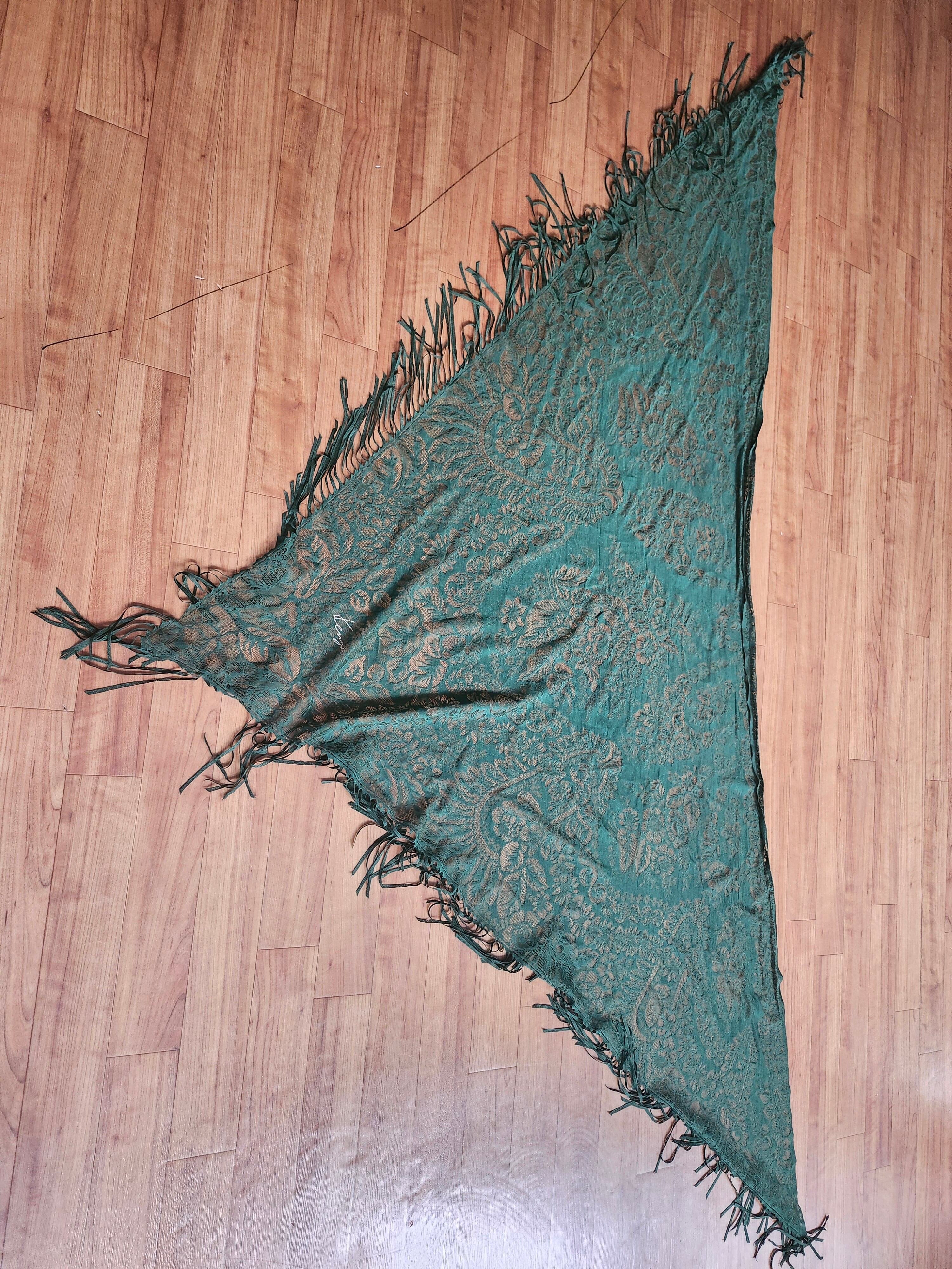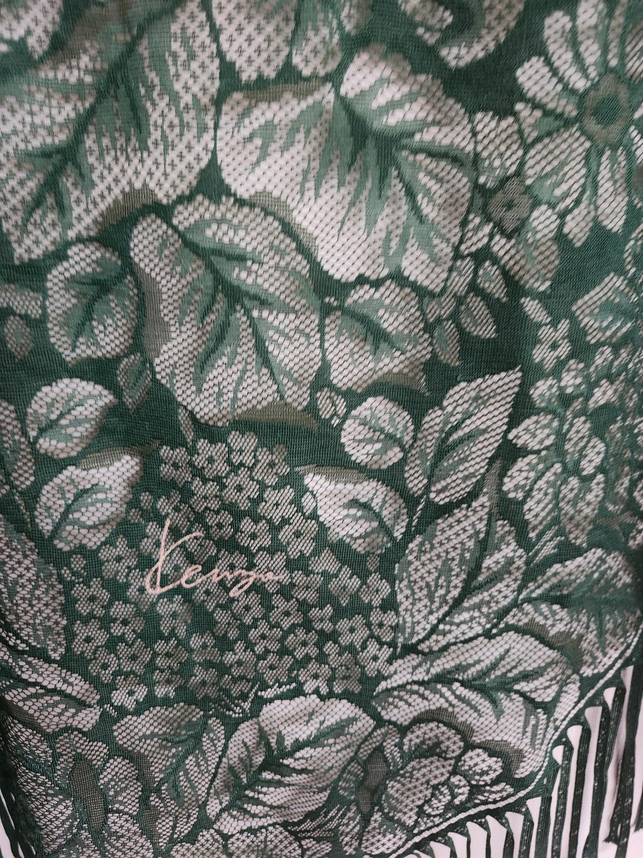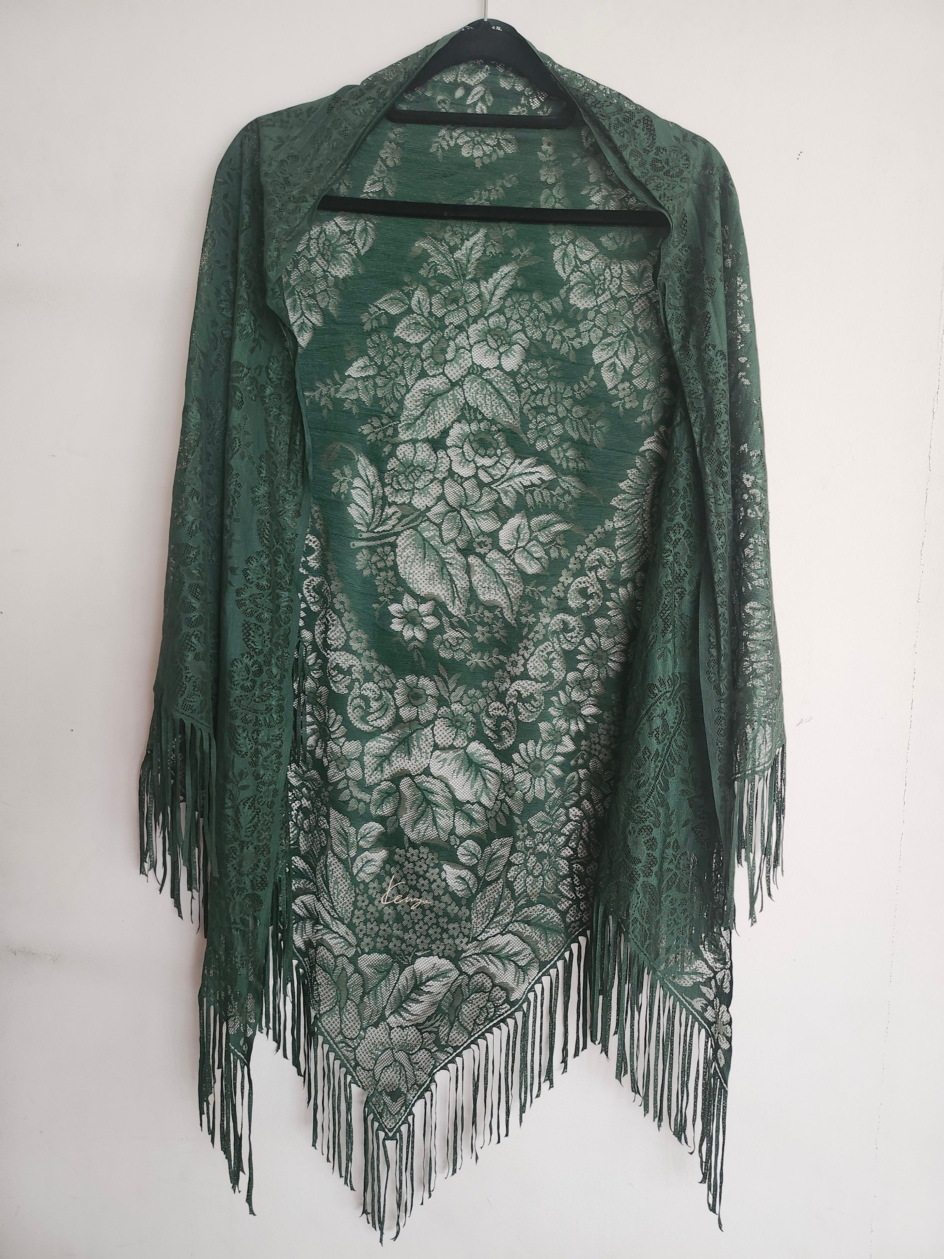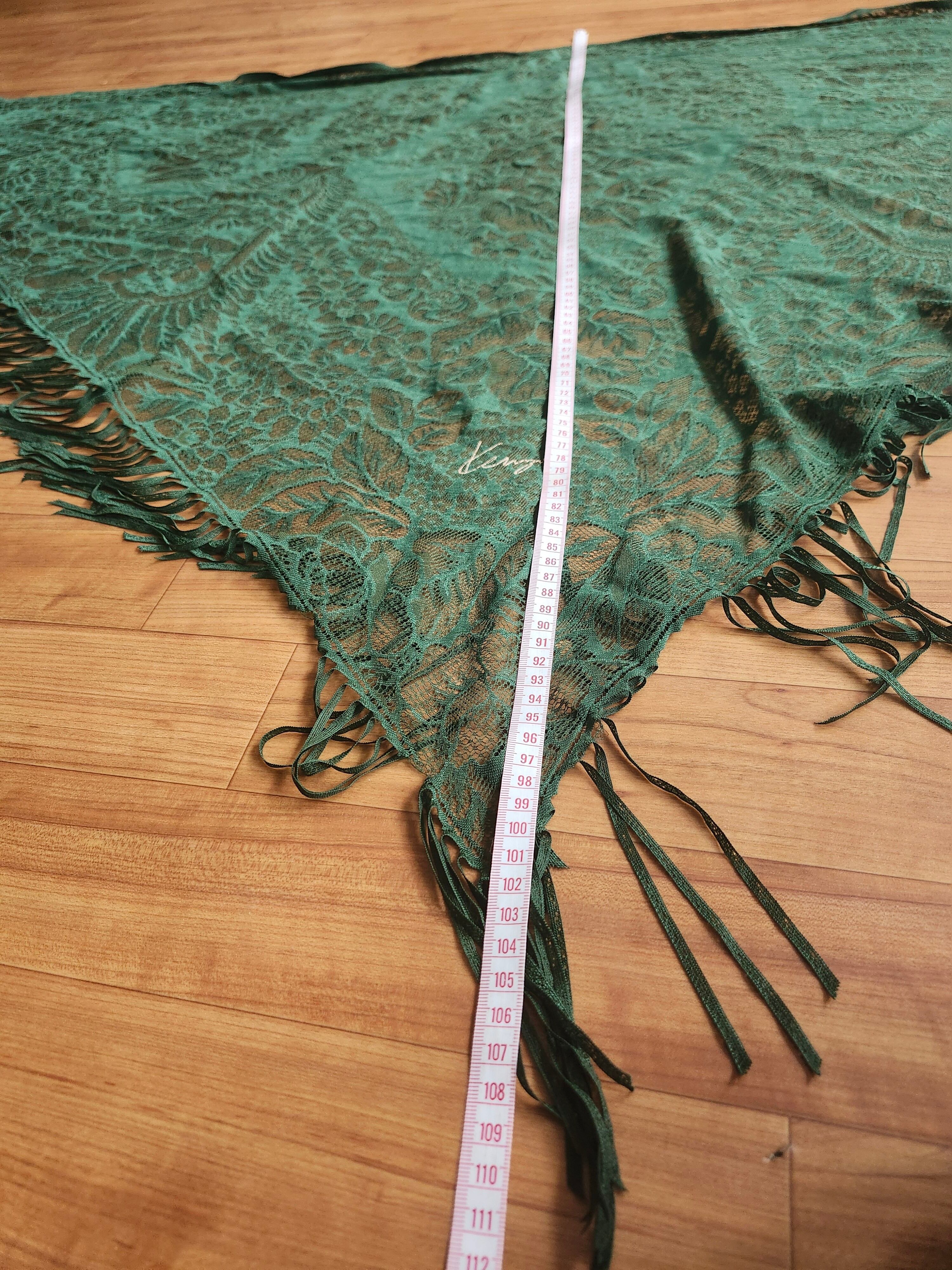 【希少・正規品】KENZO (ケンゾー) 大判レースストール 三角巾 フリンジ グリーン