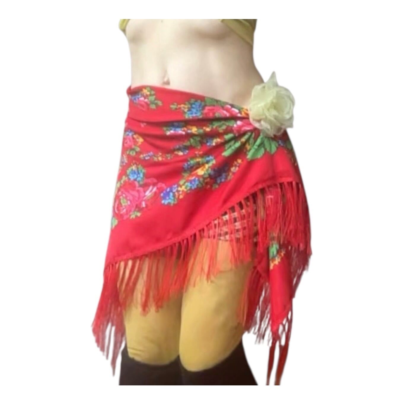 ボヘミアン フリンジショール ホワイトヒップスカーフ エレガント ベリーダンス ラテンダンス対応 レッスン用 ダンスアクセサリー レッドカラー