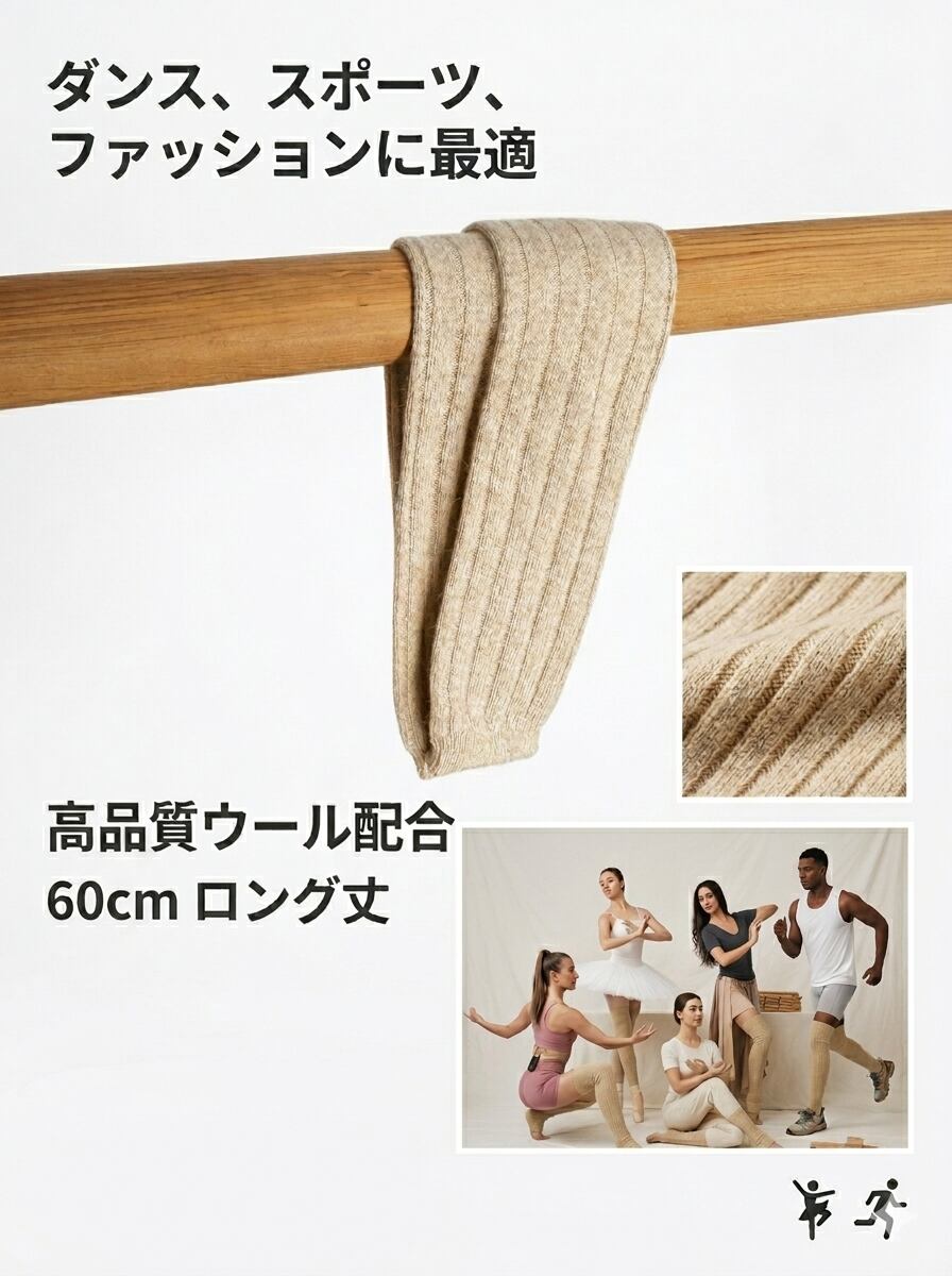 【在庫限り】ウール混レッグウォーマー 60cm ロング丈 防寒 ズレにくい バレエ ダンス ヨガ スポーツ 冷え対策