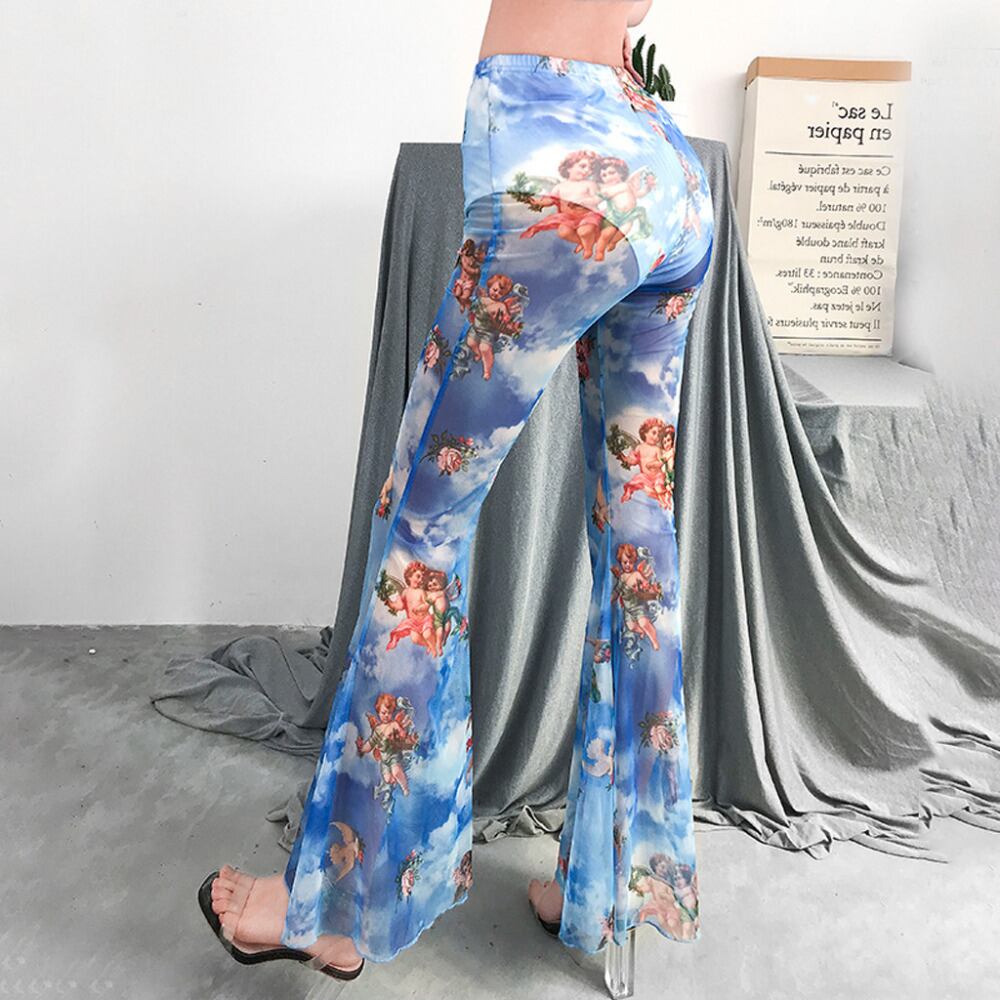 透け感のある天使のようなシフォンのスリムフィットパンツ。スタイリッシュで珍しいデザイン。ベリーダンスと日常生活の両方に適しています。ショートホワイトパンツはパンツに縫い付けますヨーロピアンデザイン 女性ハイウエストパンツ 天使の印刷 | スターマガジン 美しい人のための美しい商品