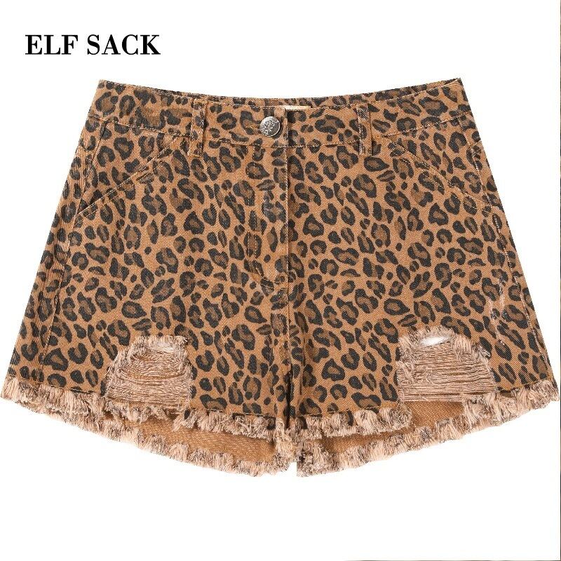 ELF SACKの女性のセクシーな豹柄ショートミットウェストコットンボトムスです。