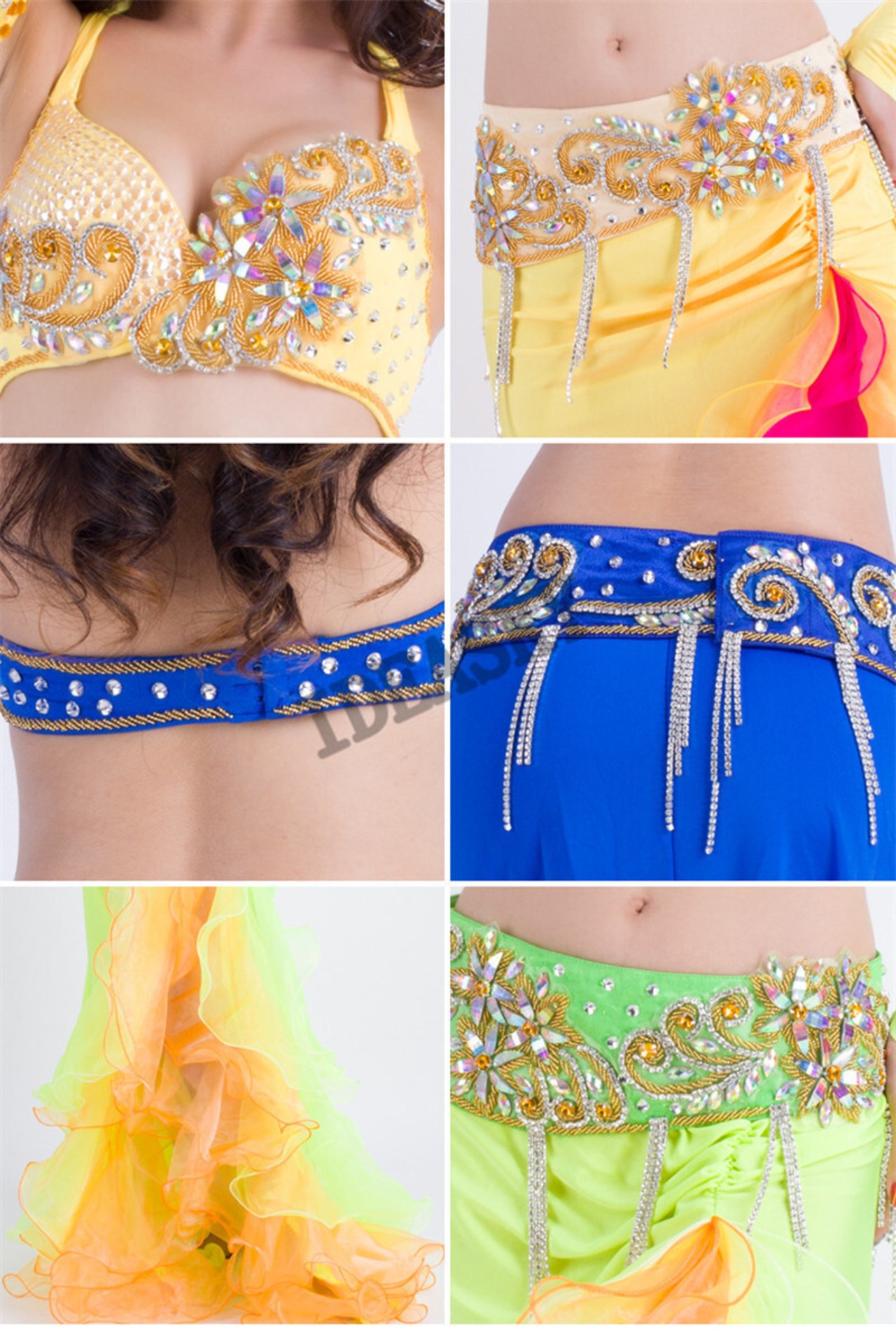 ベリーダンス 衣装 オリエンタル ハンドメイド ビーズ 4点セット ブラ・ベルト・ロングスカート・アームアクセサリー