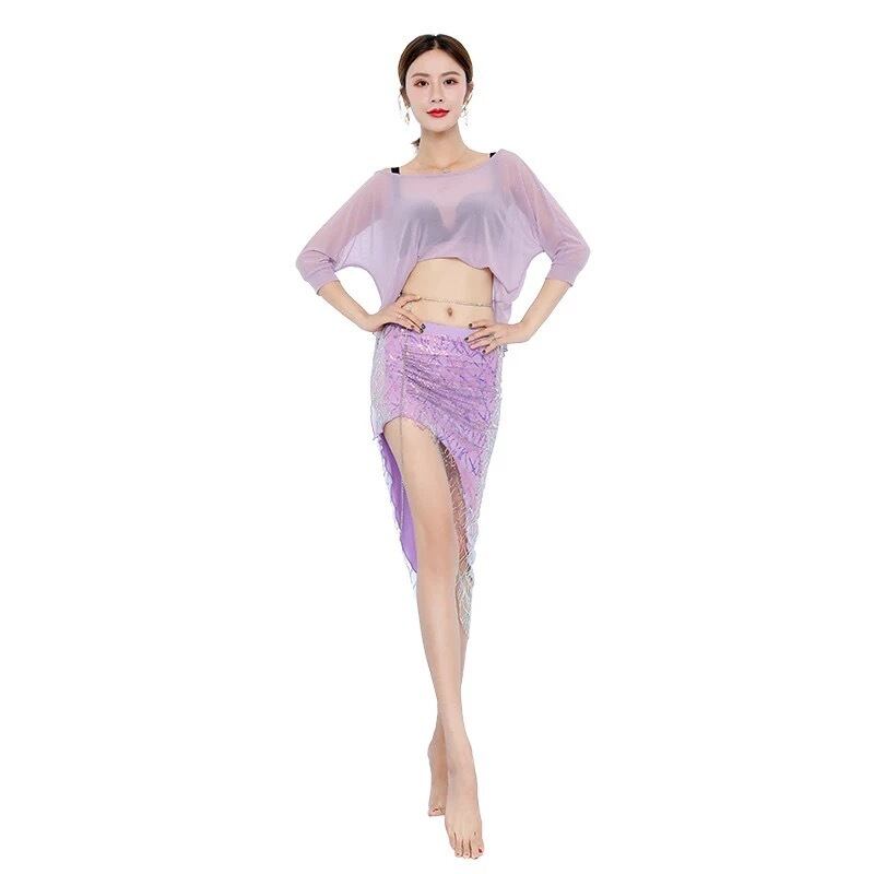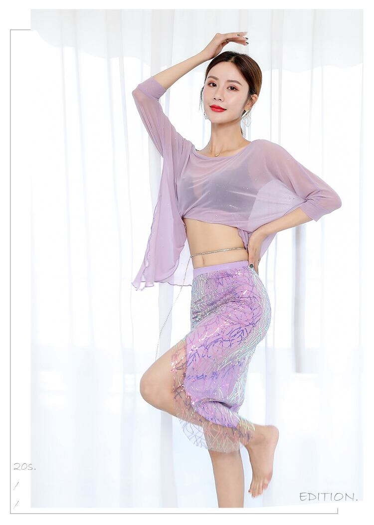 ベリーダンス メッシュ コスチューム 2点セット(トップス+スカート)レッスン&ステージ兼用