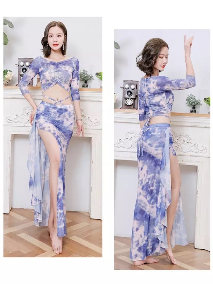 アイテムの説明ベリーダンス新しい女性のエレガントなトッププラクティスの服スーツロングスカートサマーネットヤーン職業ダンスパフォーマンス服新しい製品情報:アイテムスタイル:ベリーダンスコスチューム