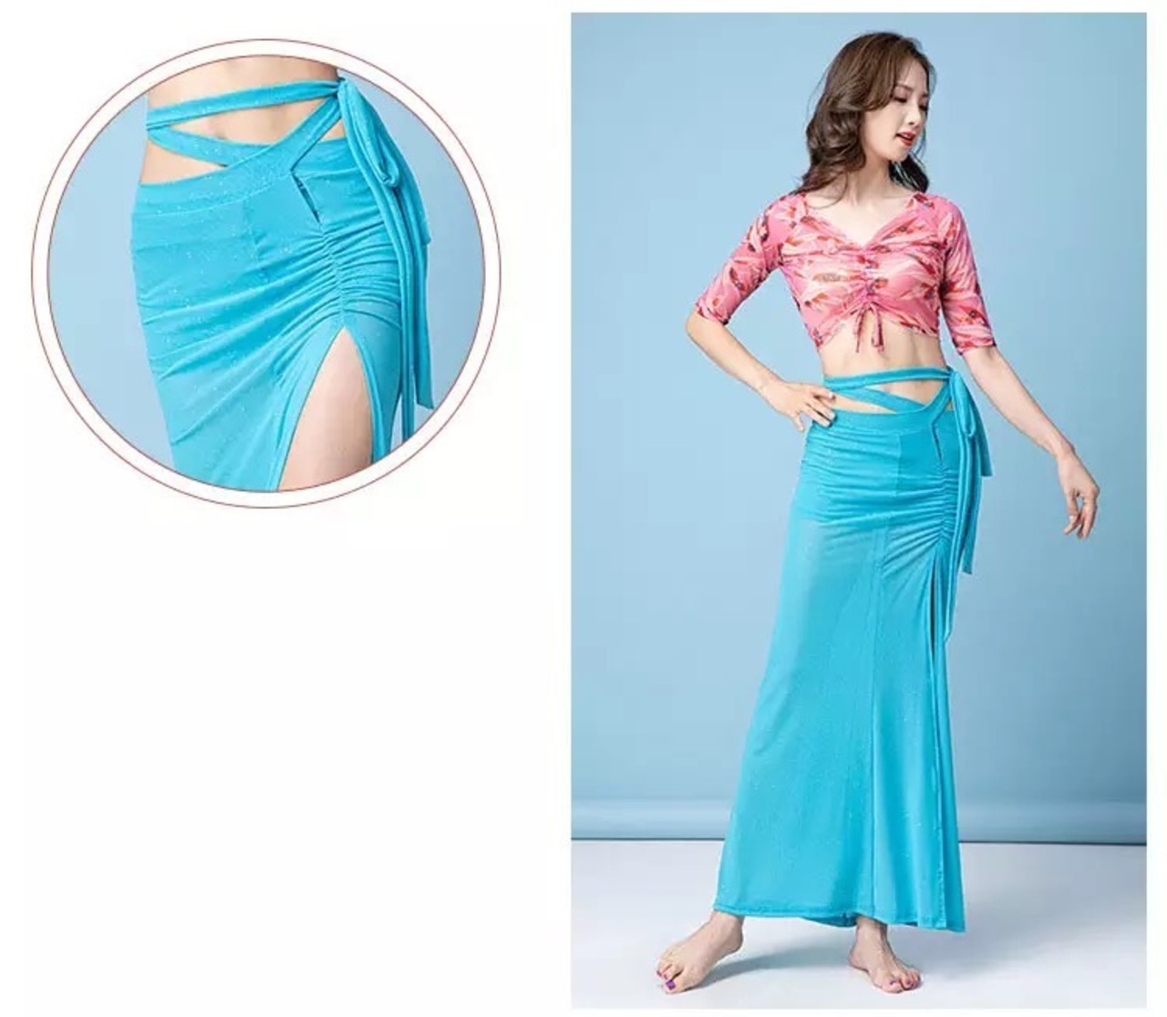 アイテムの説明ベリーダンス女性の大人の印刷トップエレガントでクールで通気性のあるセットの服ロングスカート職業パフォーマンス服ダンス