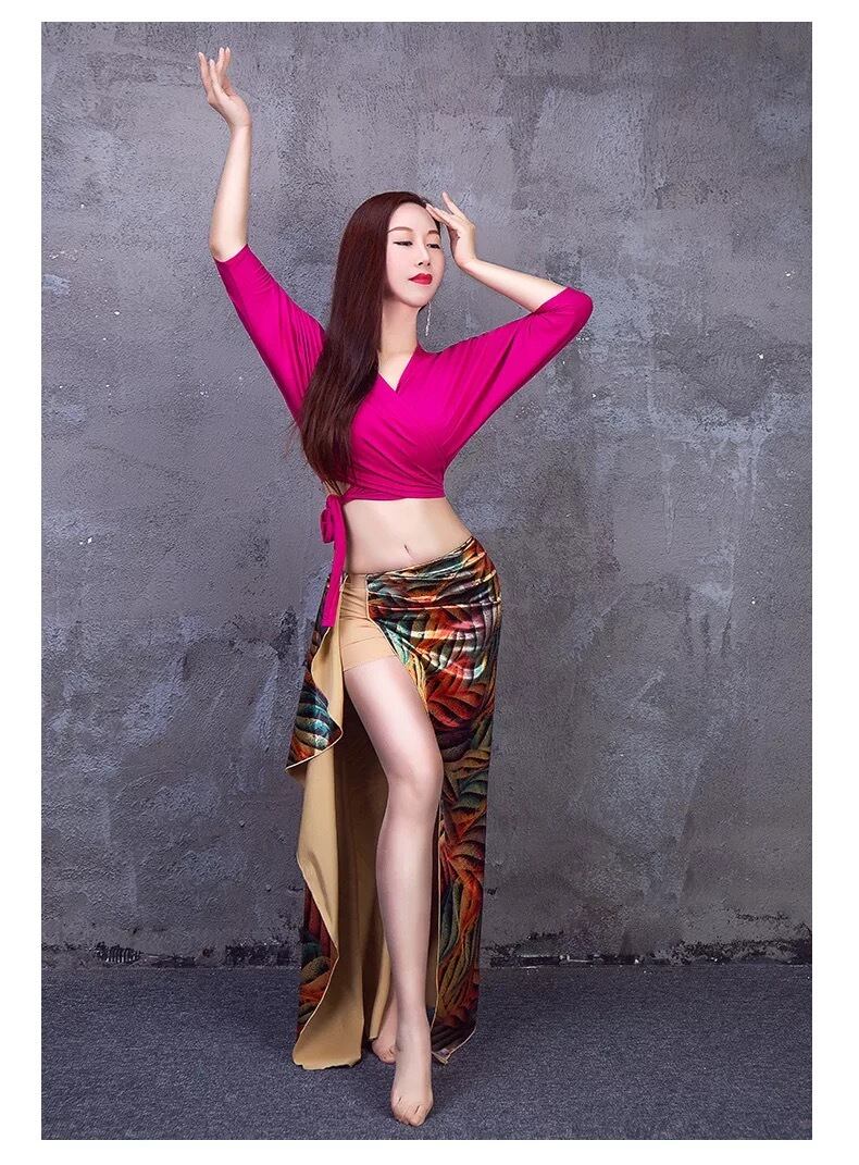 ベリーダンス用のシックなスーツ。 セット内容:モーダルで作られたブラウス、ヌードショーツが縫い付けられたロングスカート