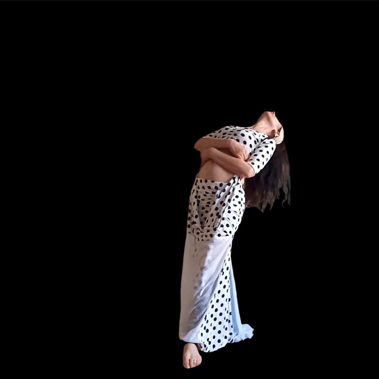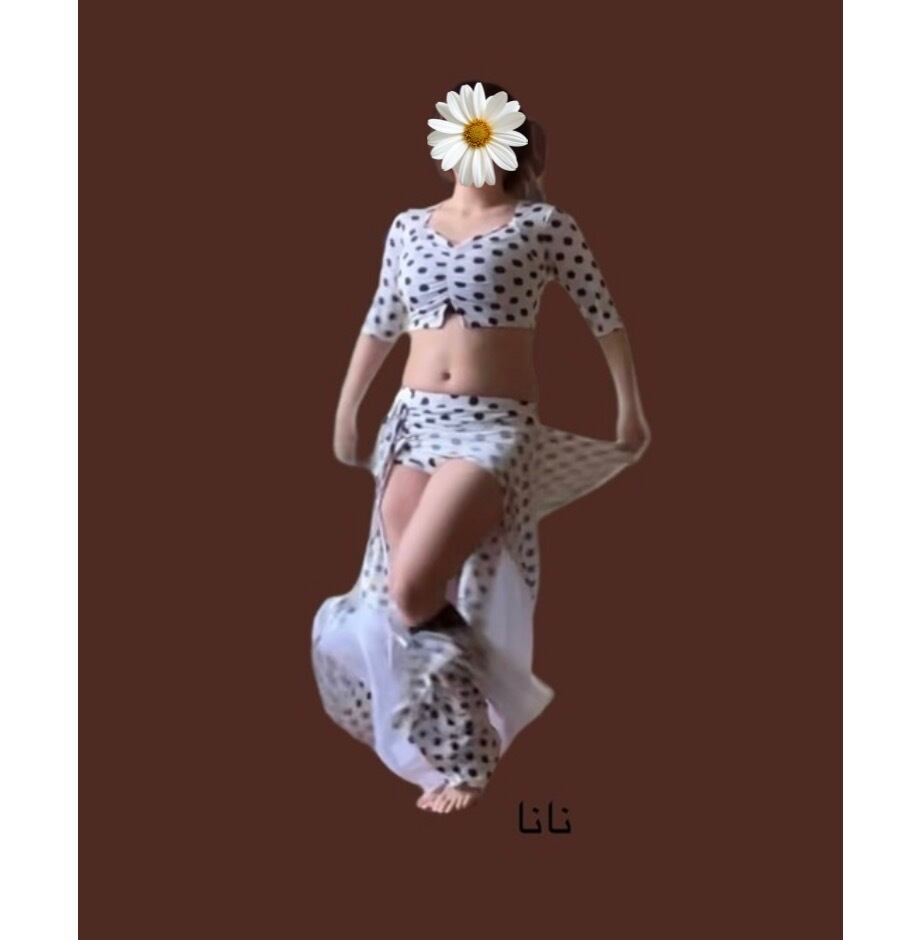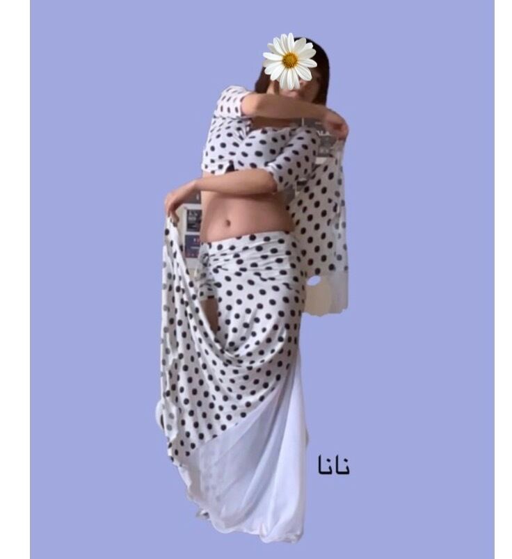 ベリーダンス衣装 水玉ロングスカート 長袖トップス付き トレーニング・ステージ用
