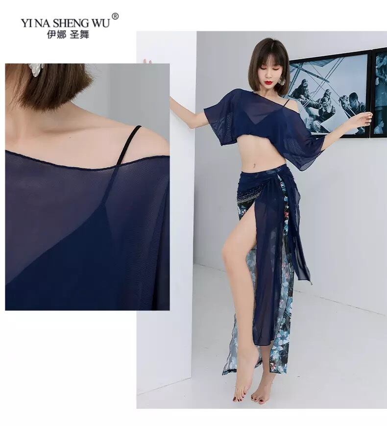 ベリーダンスのトレーニングとパフォーマンスのための服。 このダンスコスチュームは非常に良く、体の素材が快適で、非常に薄く、わずかに透明です。 スカートのベルトはとても美しい光沢のあるクリスタルで飾られています。 このダンスコスチュームは、ブラウス、ベルト付きスカート、保護ショーツの3点で構成されています。 ショーツはスカートの底と同じ素材で作られているので、かなり半透明です。