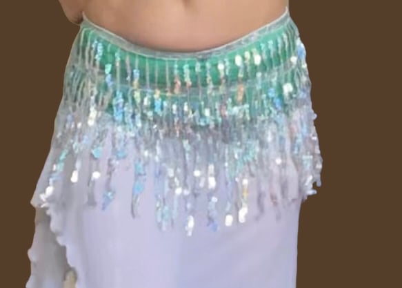 ベリーダンストレーニングパホーマンスヒップスカーフベリーダンス用ふんどし。ベリーダンス教室、公演。スパンコールをあしらったベリーダンス用ベルトシフォン