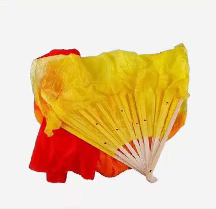 合成素材を使用しているため、シルク製ファンベールに比べて扱いやすく、形が安定しやすいのが特徴です。軽量で風をしっかり受けるため、少ない動きでもダイナミックな演出が可能。価格面でも実用性が高く、日常のレッスンやトレーニングにも適しています。
