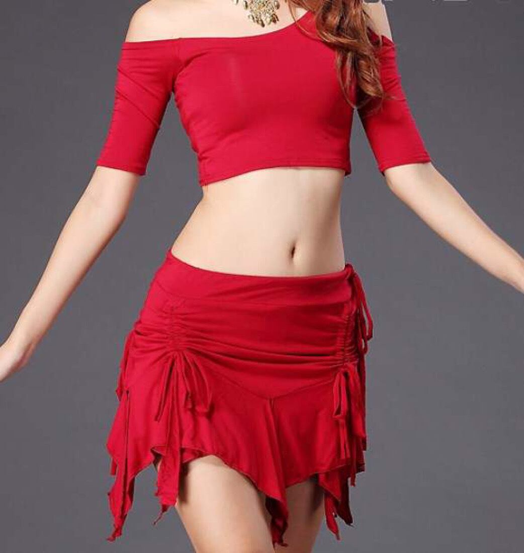 ベリーダンスラテンダンスクラスとリハーサル用のダンスブラックコスチューム ショートスカートとタイトトップ モーダル