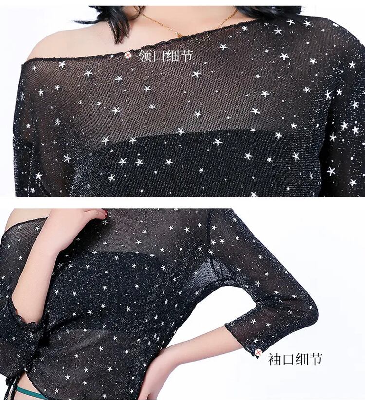 ダンスフロアでは、なびく生地が自由な動きを可能にし、ベリーダンスやラテンダンス、ソーシャルダンスでフルに才能を発揮することができます。このブラウスは、特にベリーダンスとラテンダンスのために作られています。きらめく星がすべての動作に夢のような輝きを与えてくれます。
