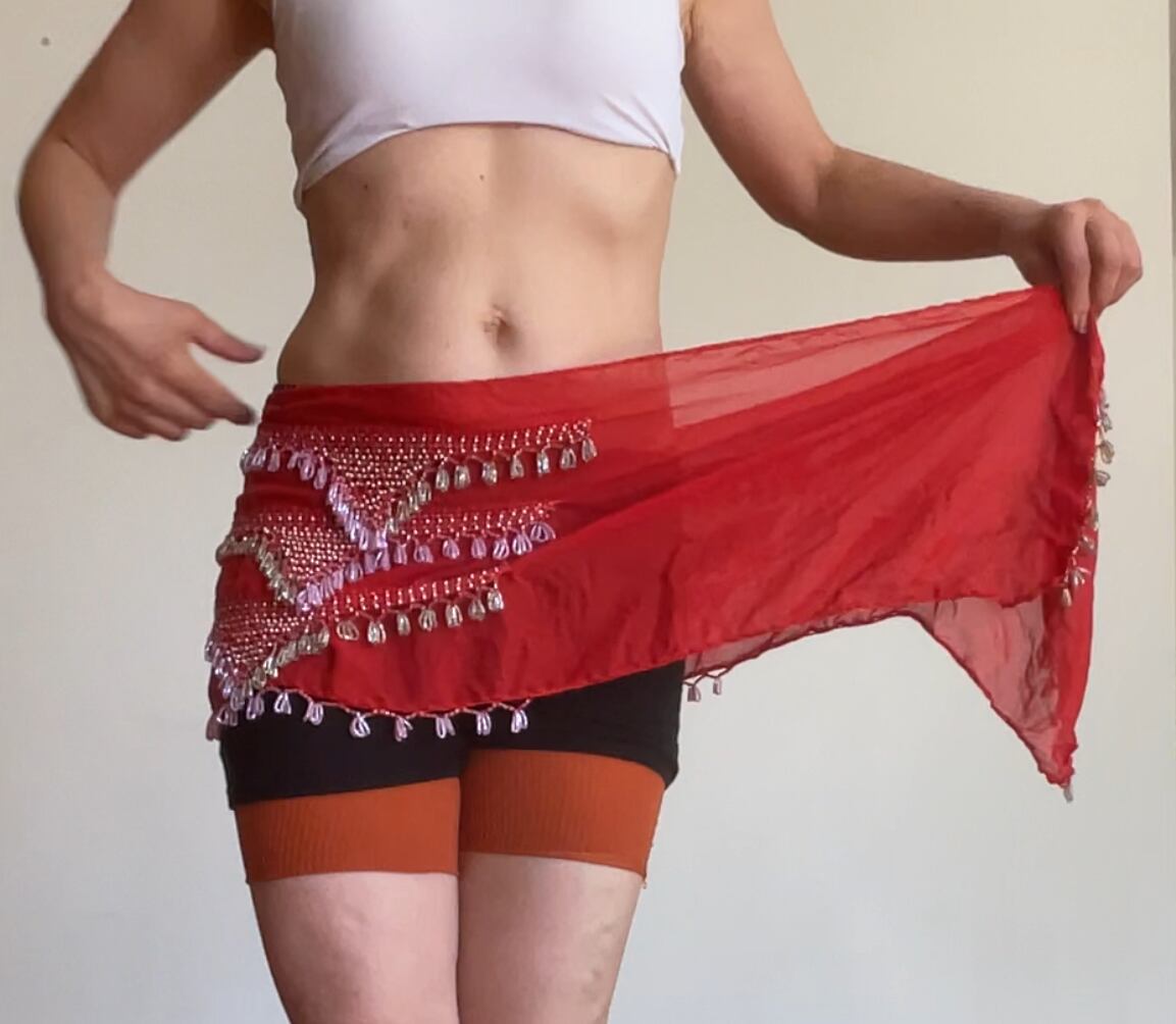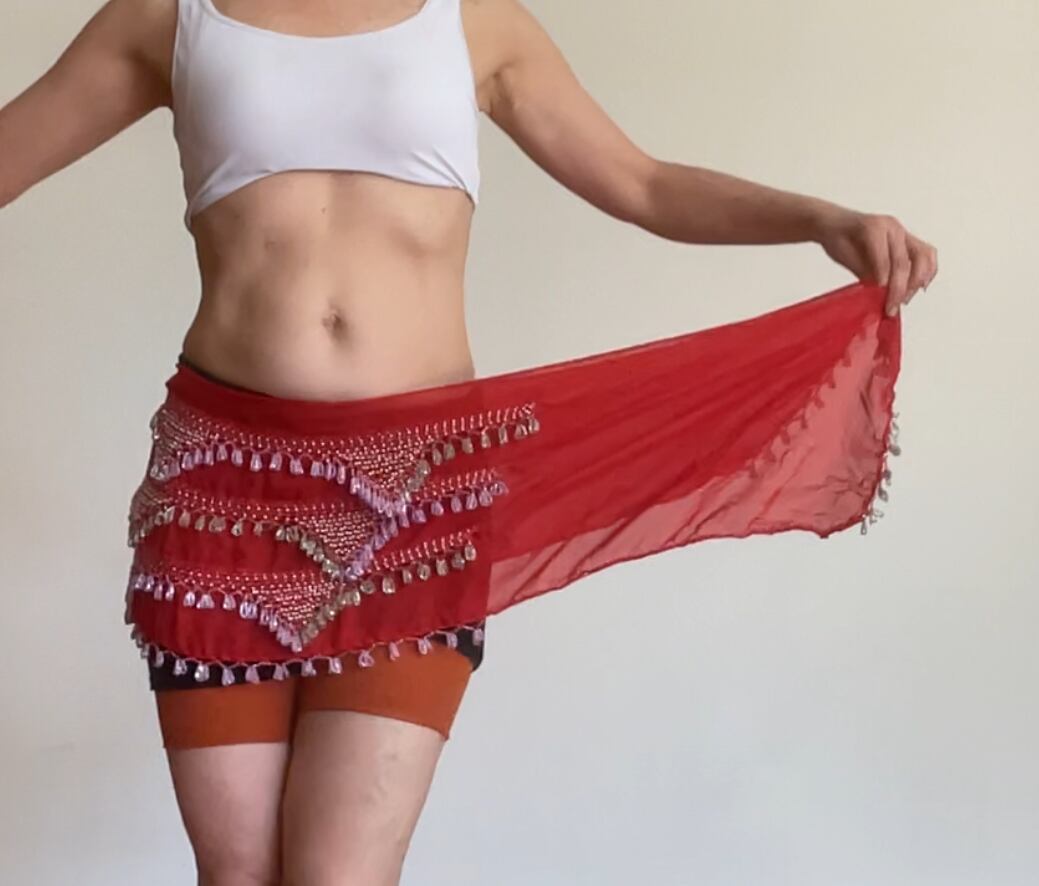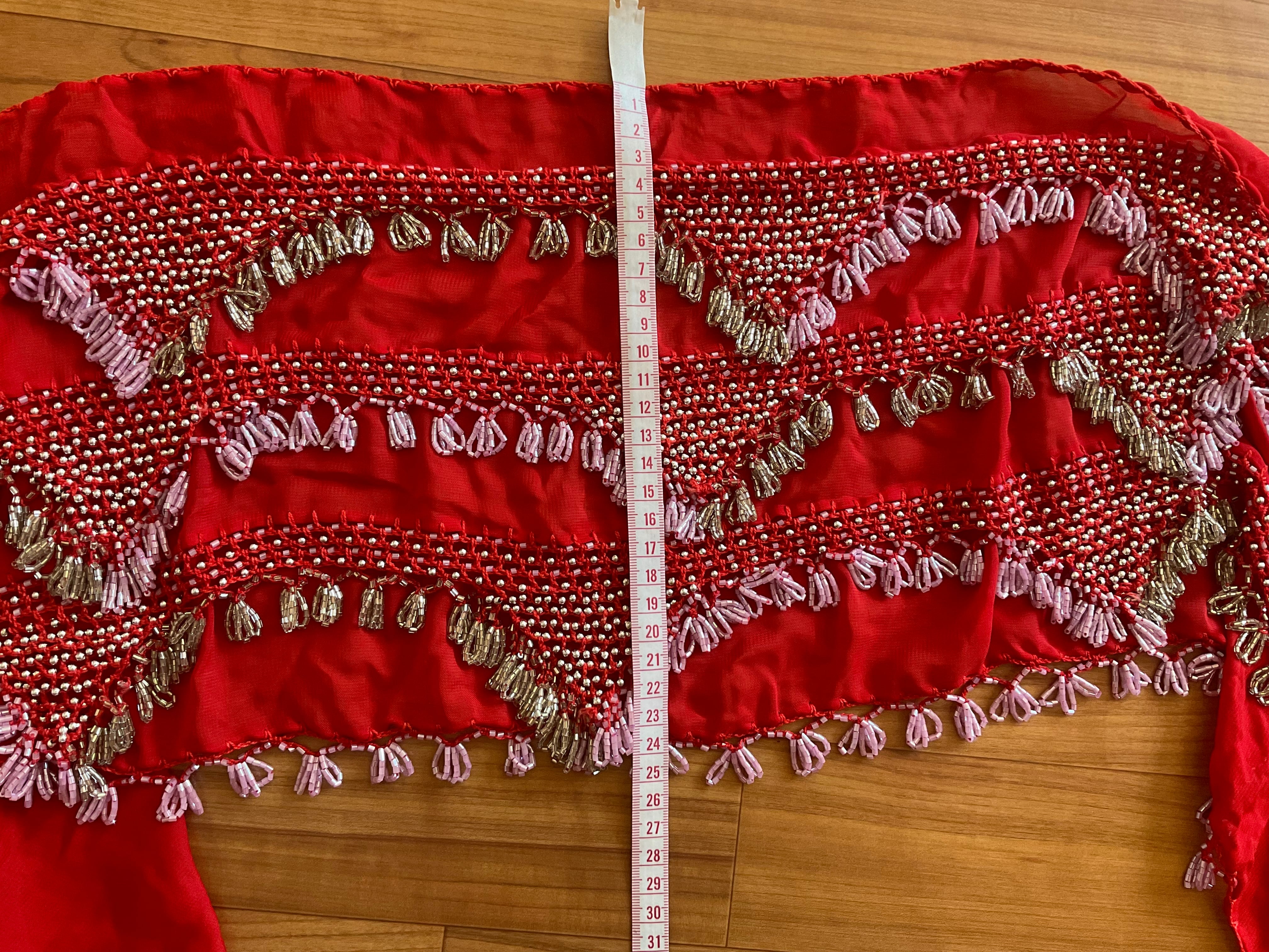 ベリーダンスペンダントで飾られた赤いヒップスカーフ中古品コスプレパーティーディスコベリーダンスのステージパフォーマンス用のスタイリッシュなトレーニングアクセサリー珍しいベリーダンスベルト | スターマガジン 美しい人のための美しい商品