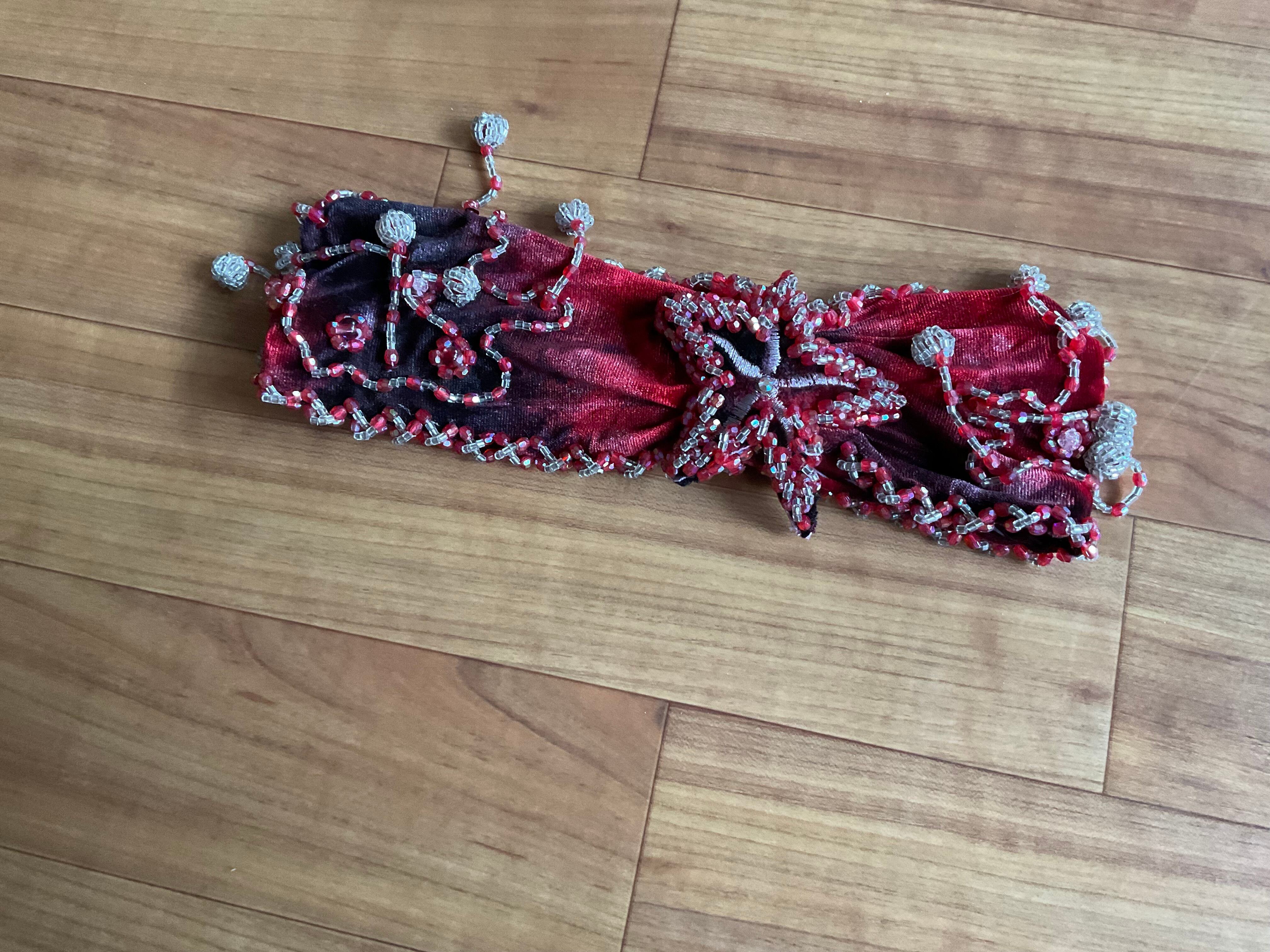 5点セット ベルトが縫い付けられた刺繍入りスカート、ブラジャー、ヘッドバンド、同素材の手袋 2 個