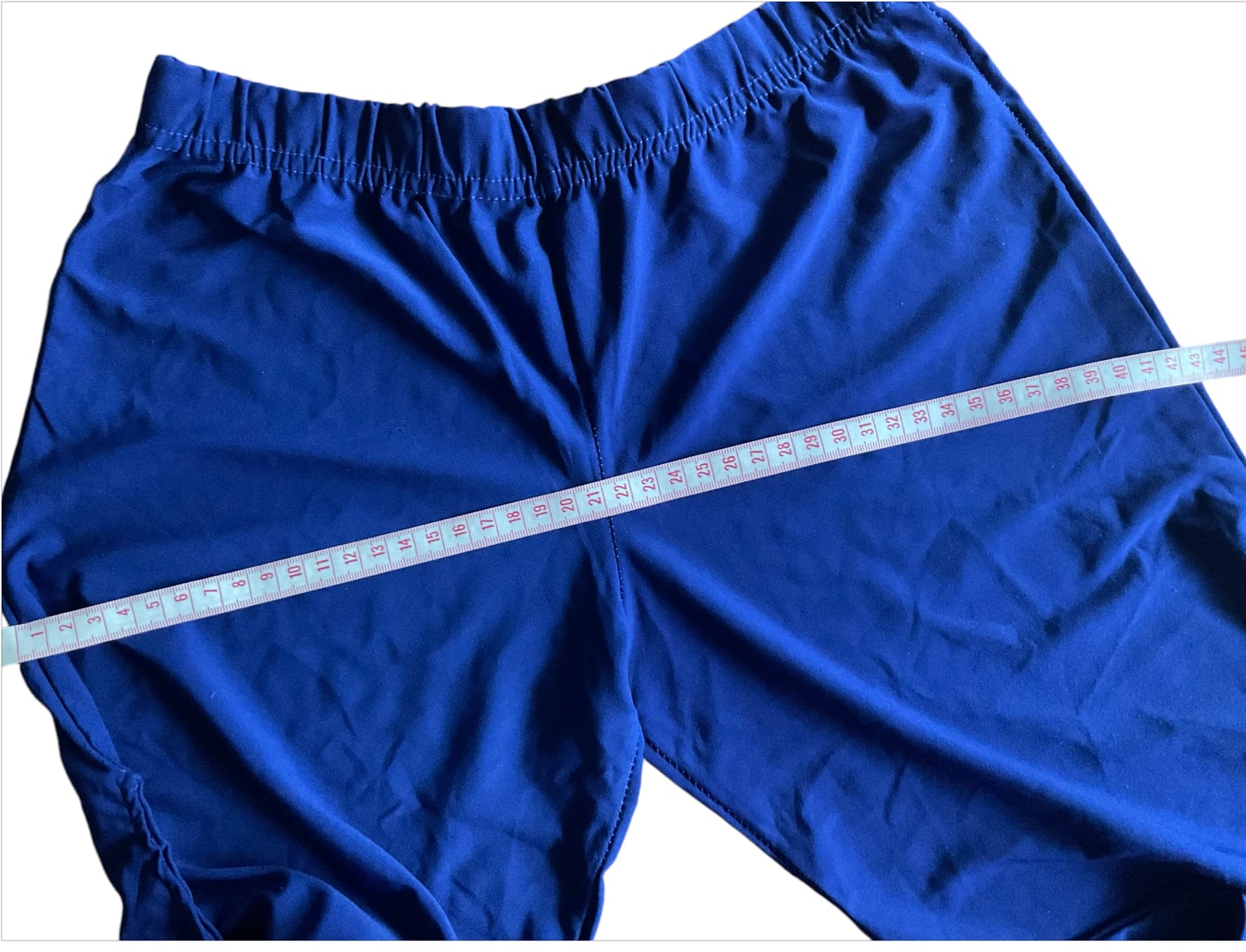 ブルーのフレアパンツの全長は約92cmです。